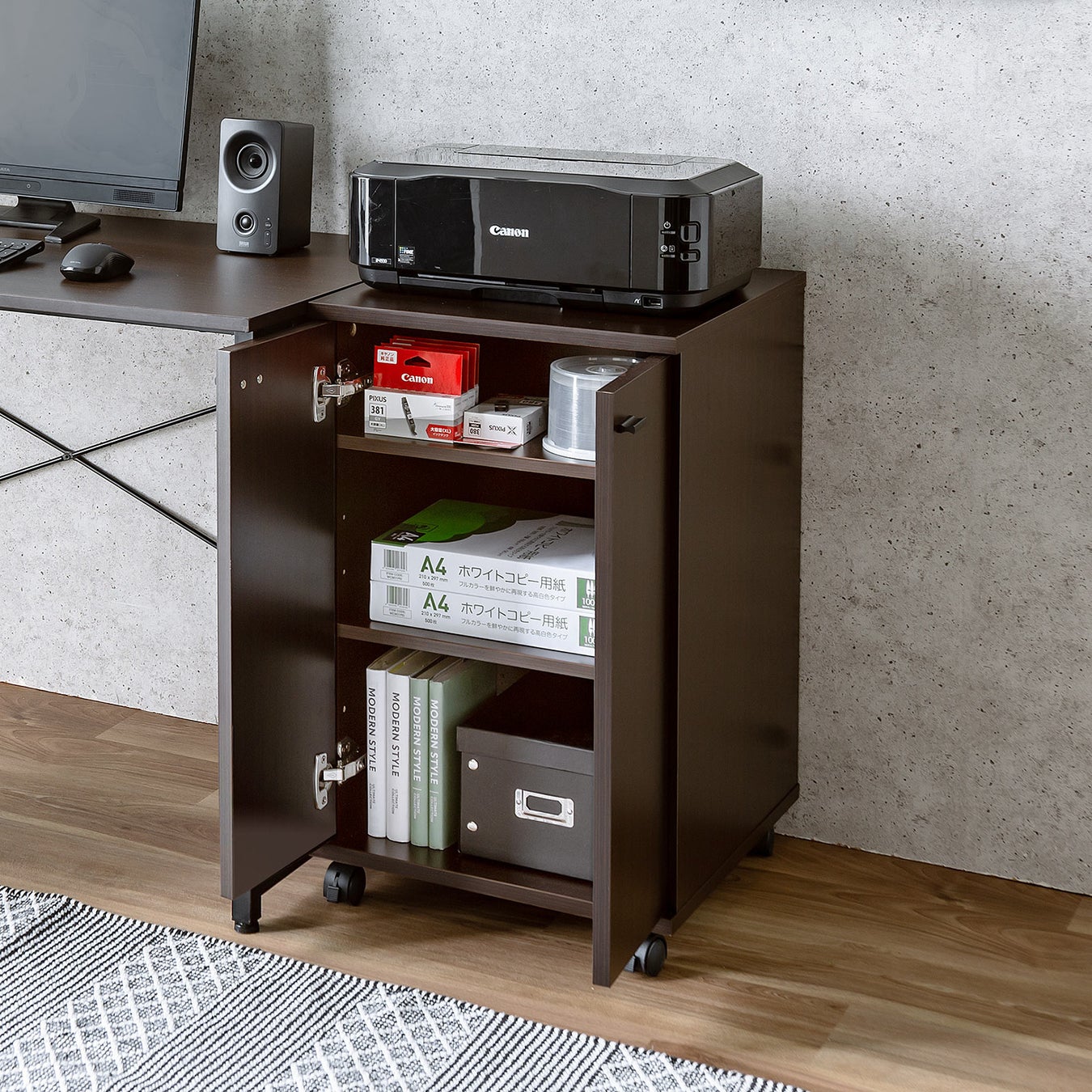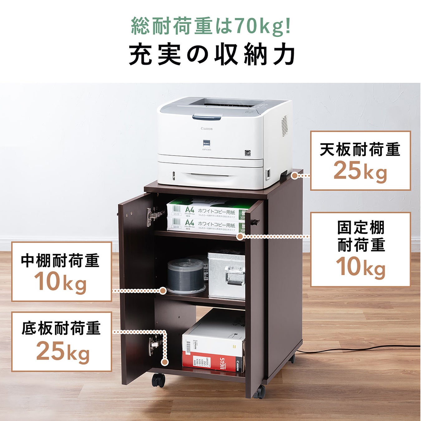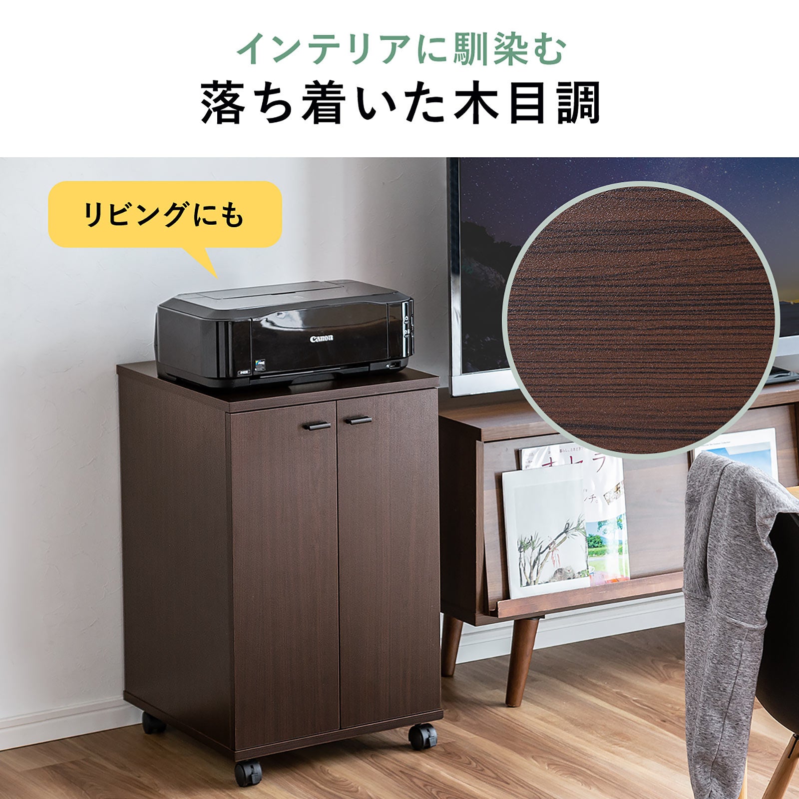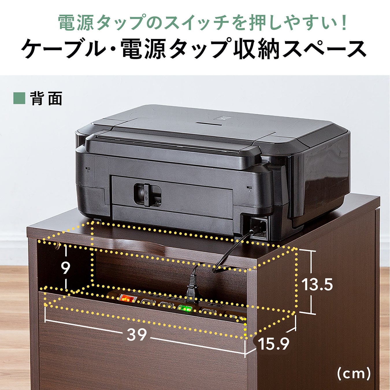 プリンタスタンド 木製 キャスター 扉付 ケーブル配線 ルーター収納 ケーブル収納