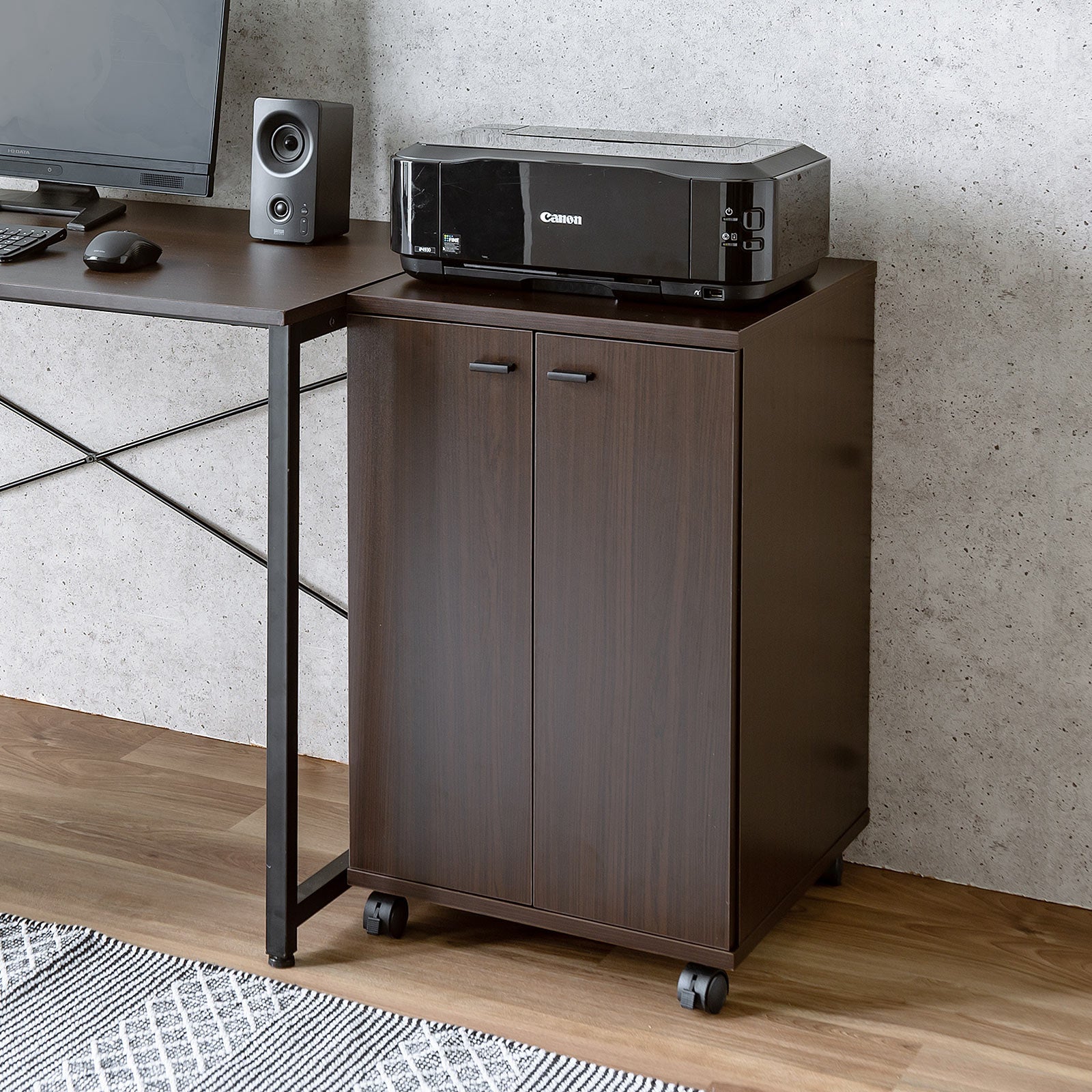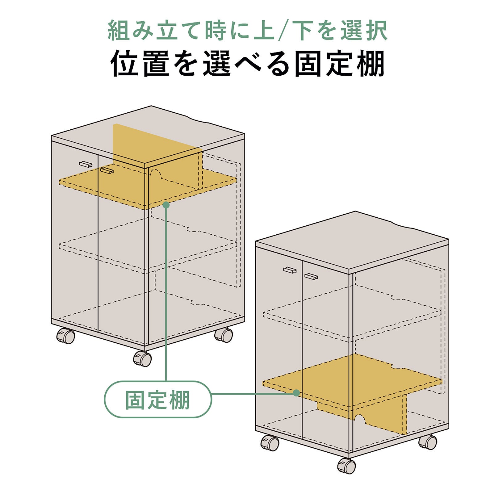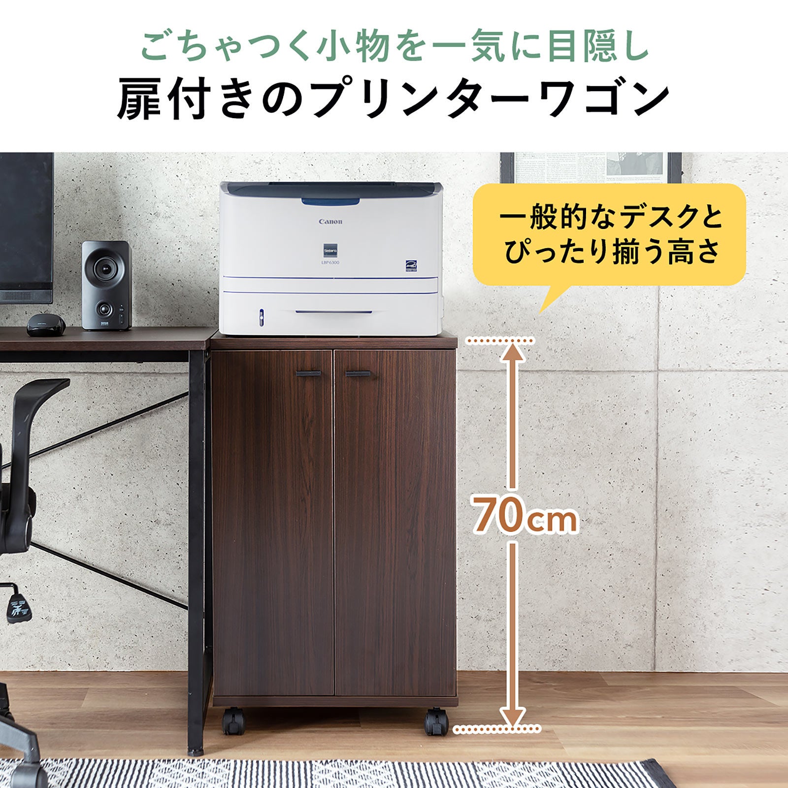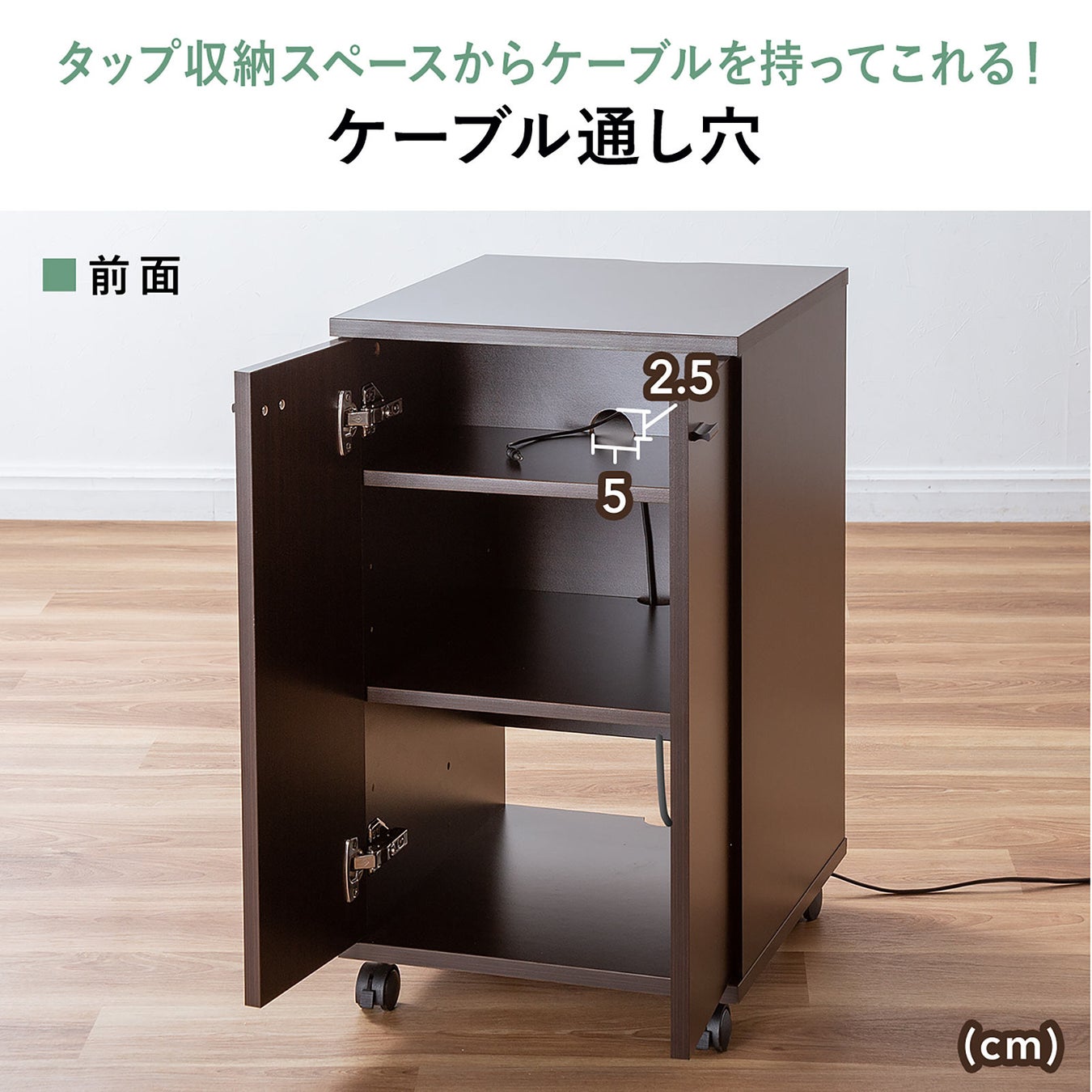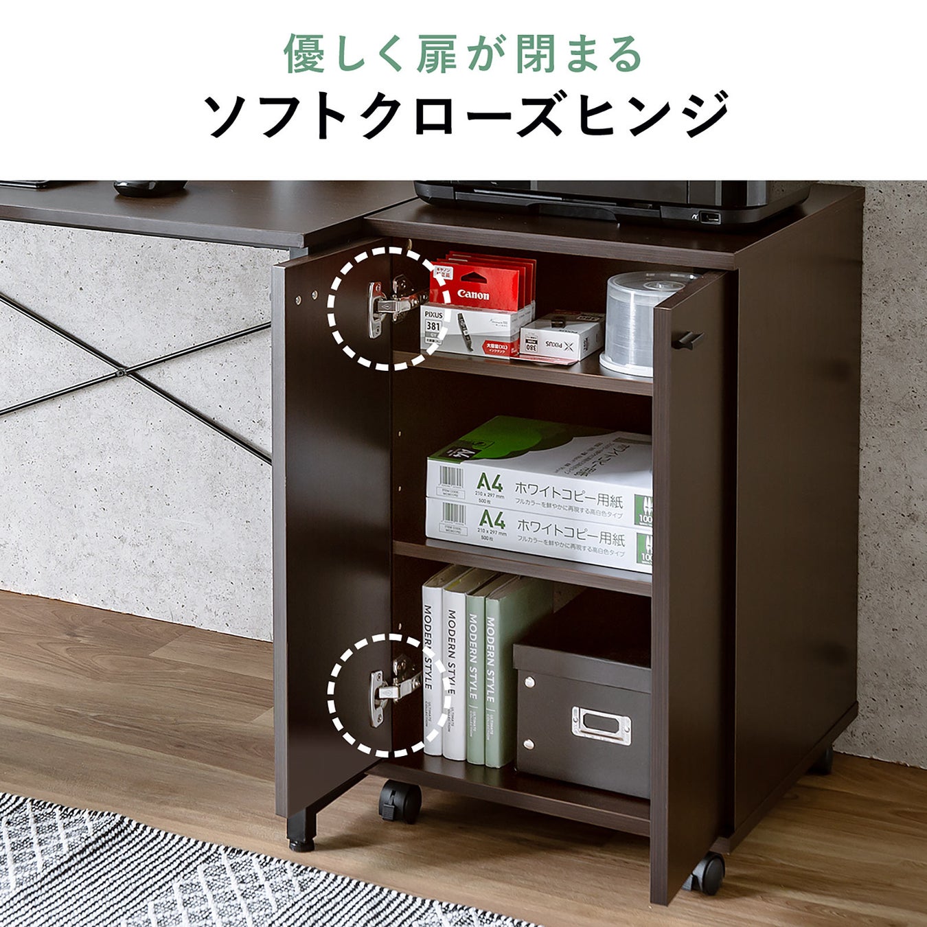 プリンタスタンド 木製 キャスター 扉付 ケーブル配線 ルーター収納 ケーブル収納
