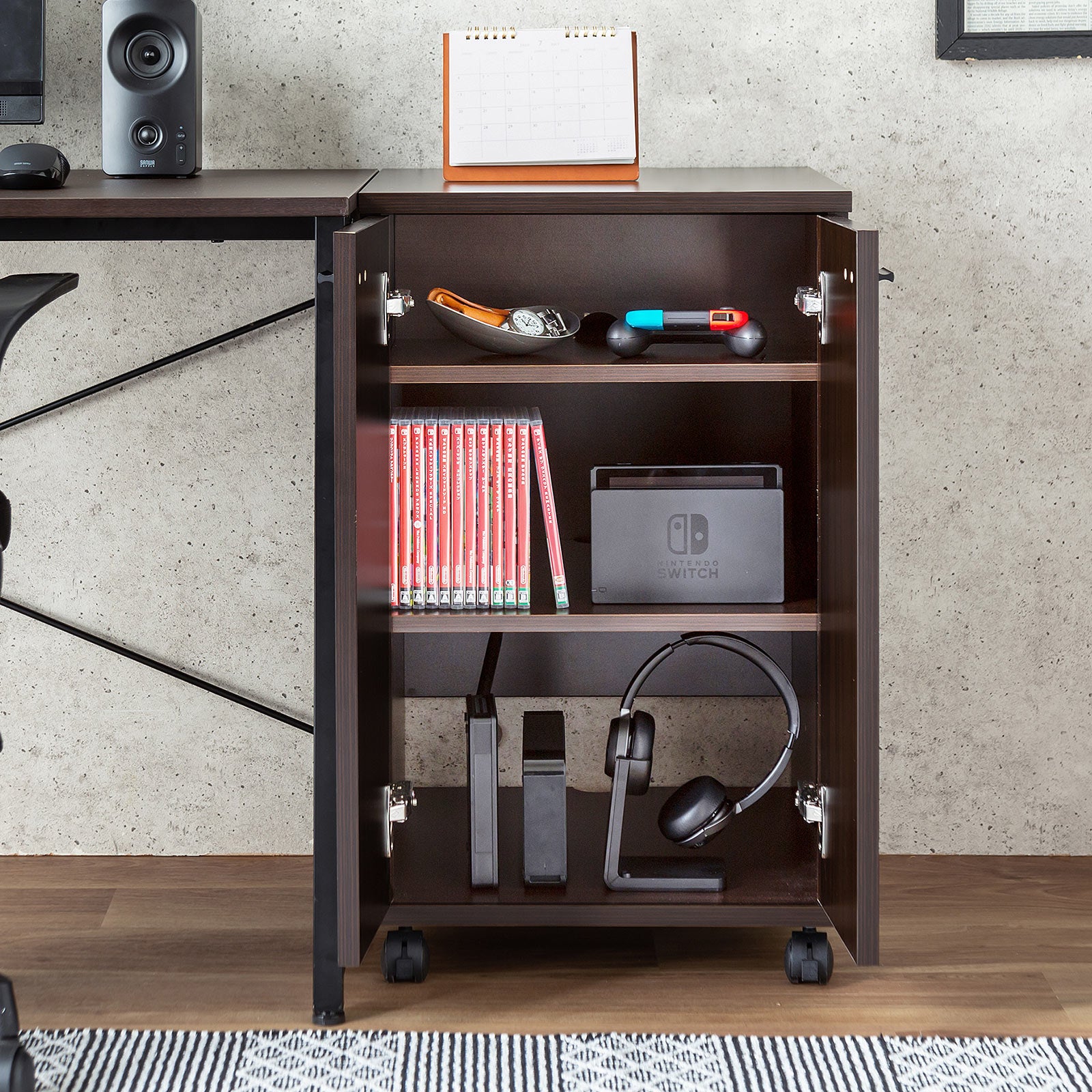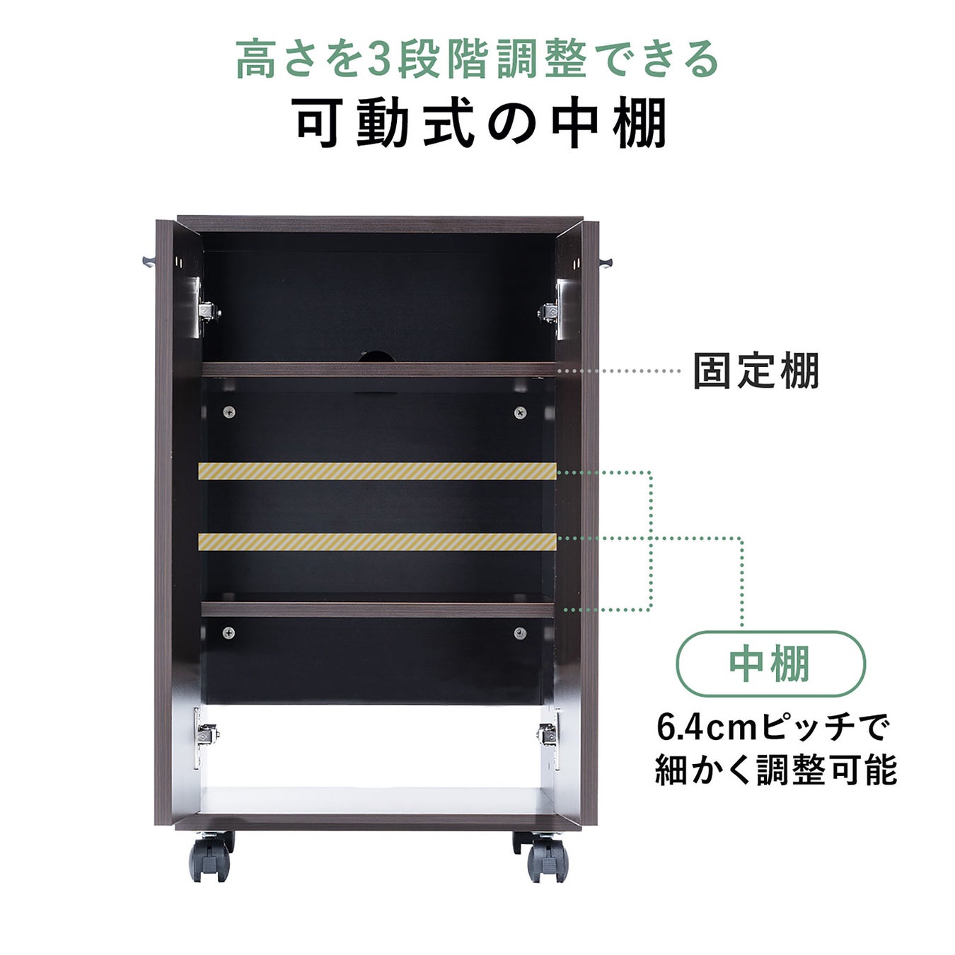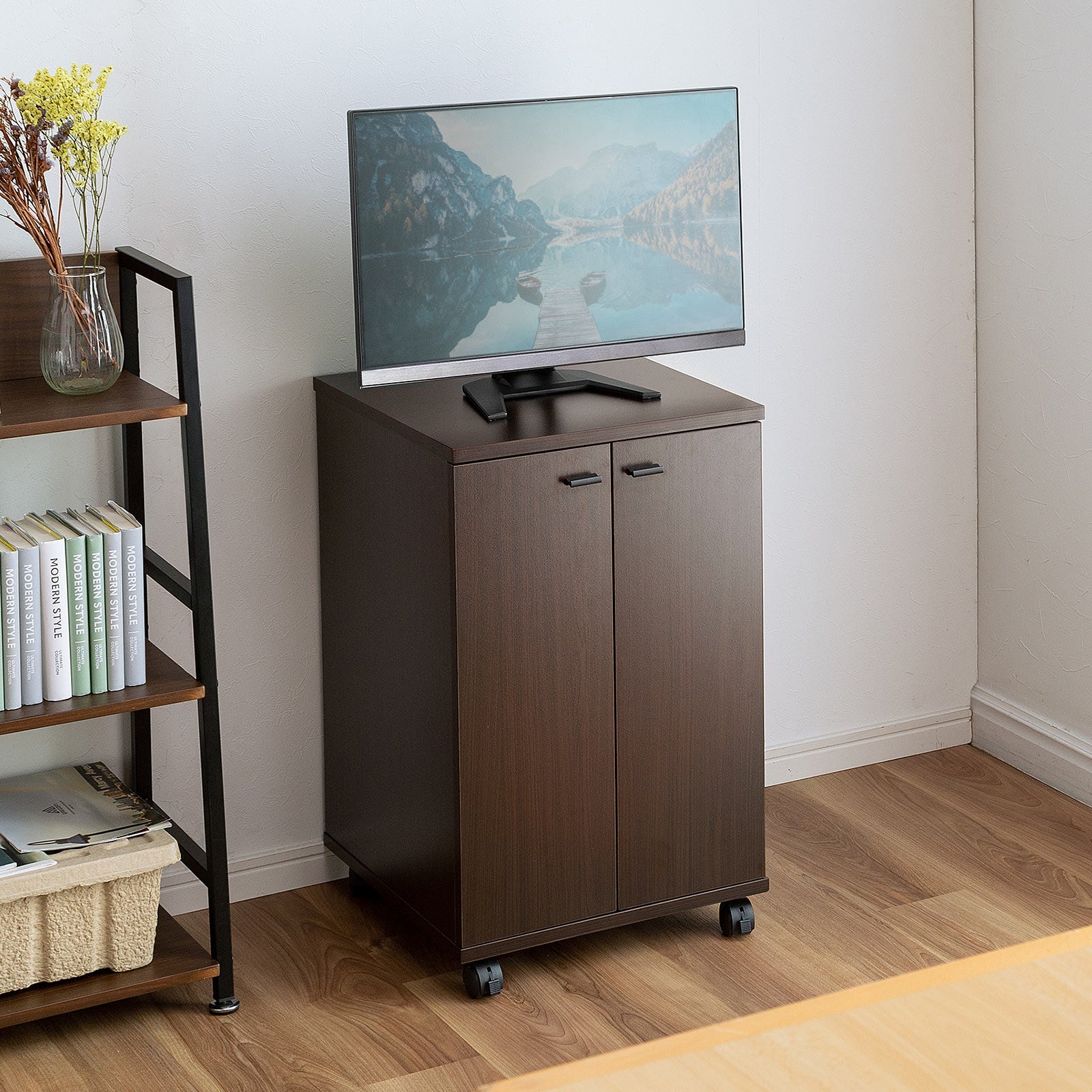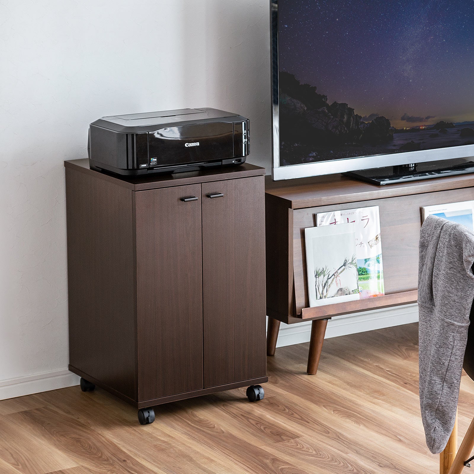 プリンタスタンド 木製 キャスター 扉付 ケーブル配線 ルーター収納 ケーブル収納