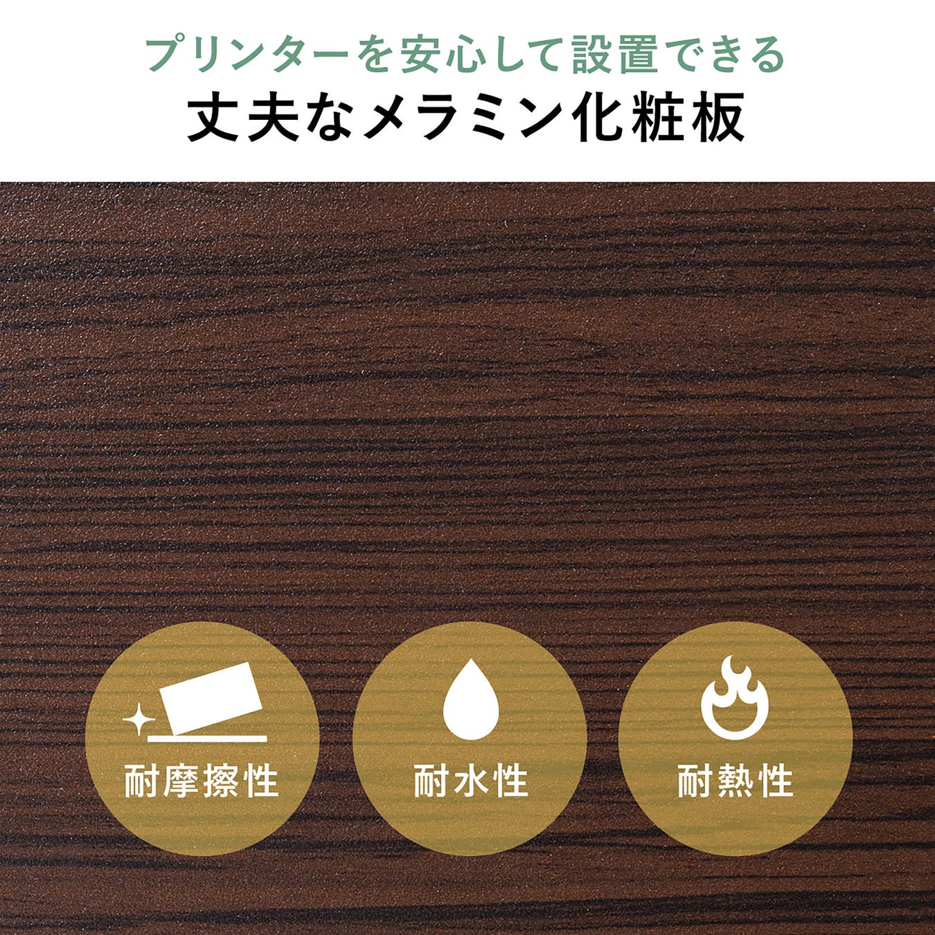 本製品は、リビングや書斎に合う落ち着いた木目調のプリンターワゴンです。