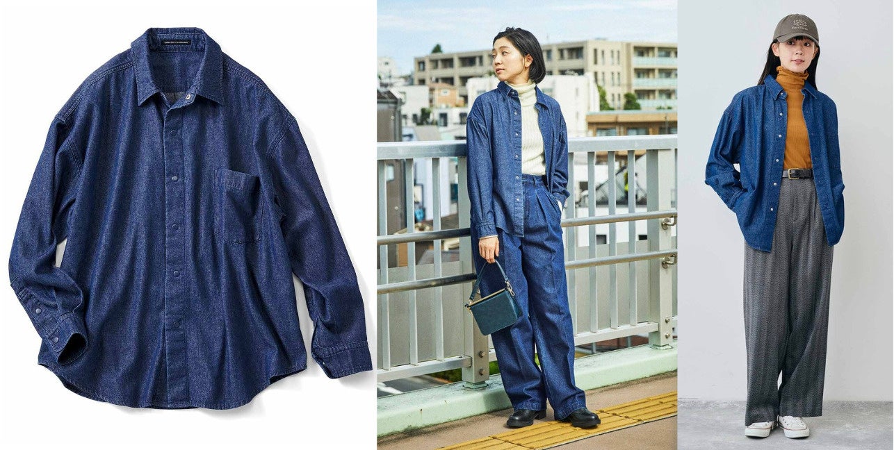 一枚でもはおりでも、一年を通して長く着られるライトオンスのデニムシャツです。秋冬おしゃれへの取り入れやすさを考えて、やや厚みのあるトップスのうえからも重ね着しやすい、大きめのシルエットで作っています。洗いをかけてやわらかな風合いに仕上げているから、きれいな落ち感とやわらかな着心地が同時にかないます。着るほどに色落ちして育っていくのも、インディゴシャツの魅力です。