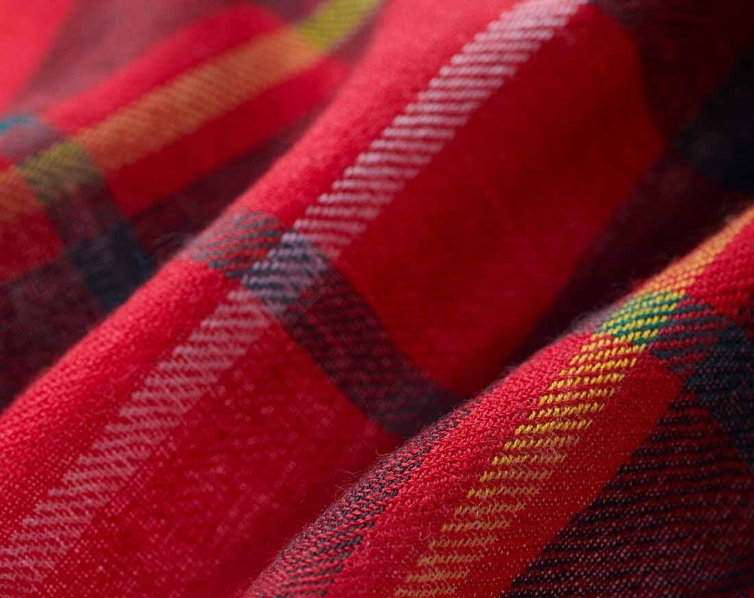 おしゃれの可能性がぐんと広がるウールスカーフが、着こなしに品よく映える赤のチェック柄で登場しました。首もとやバッグに巻いたり、秋冬や夏の冷房などで肌寒いときにはショールのように肩に掛けたり、一年を通してあらゆるシーンで活躍します。大きさは、バッグに入れて毎日持ち歩きやすいお手ごろなサイズ感で、肌に直接触れてもストレスなく過ごせるように、チクチクしにくい素材選びにもこだわった上質ウール100%です。
