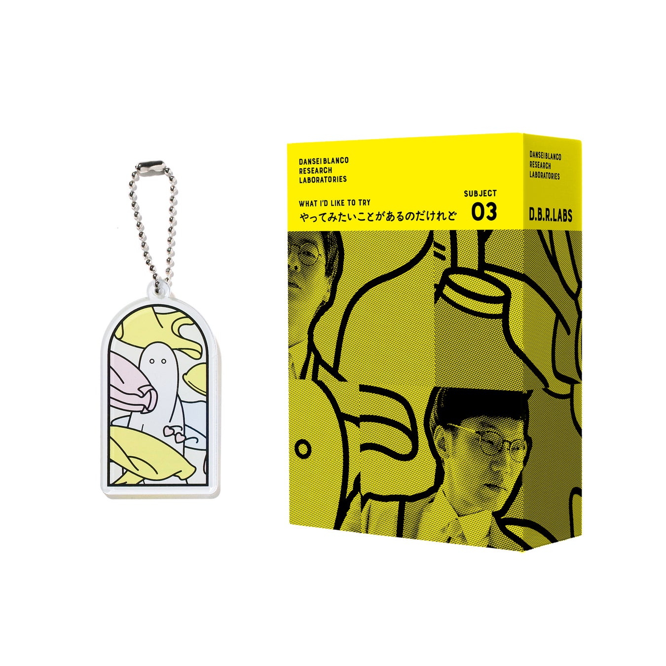 「D.B.R. LABS」の研究成果を結集し、実験的に開発したアクリルキーホルダー。この特別なアイテムには、男性ブランコのこれまでのコントライブを視聴できるQRコードが付属されています。男性ブランコが舞台の上で紡いできた単独公演の軌跡を、ぜひあなたのお手元でお楽しみください。