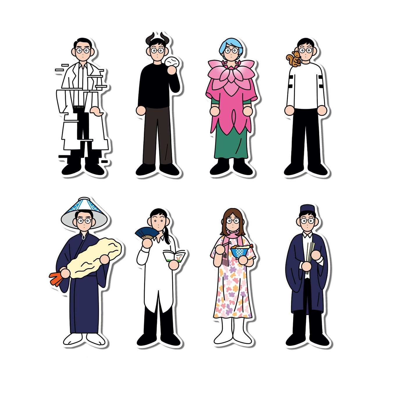 (全16種/アルファ博士、ゼゼ、フラー、デル太、てんどんさん、天寺陽美、 ミカさん、大国主十郎、浦井のりひろ、平井まさあき、宍戸禅、研究者A、 54-MA、心中お察し丸、川上、白石)