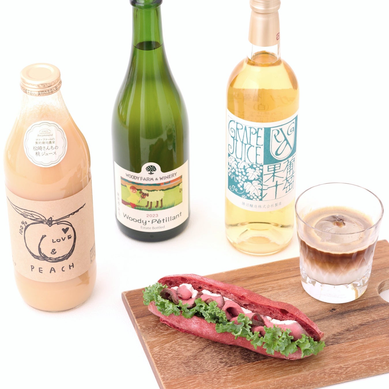 山形県上山市のウッディー&ワイナリーが醸した柔らかな泡立ちが特徴のスパークリングワイン。ゴクゴク身体に染み渡るナチュールワインはローストビーフサンドにぴったりです。