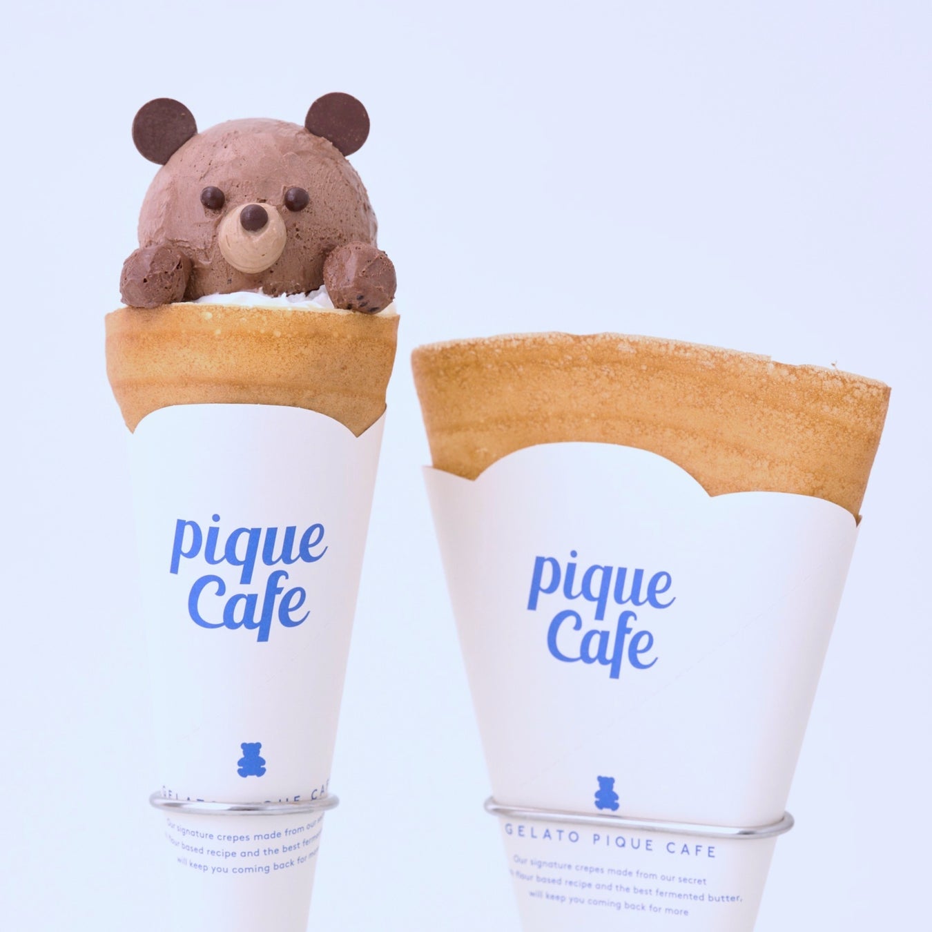 厳選したフランス産の小麦粉でもちもちとパリパリの食感をかなえる絶妙な配合の生地を、お砂糖とフランス産の高級発酵バターでシンプルに楽しむ、ピケカフェのシグネチャー。