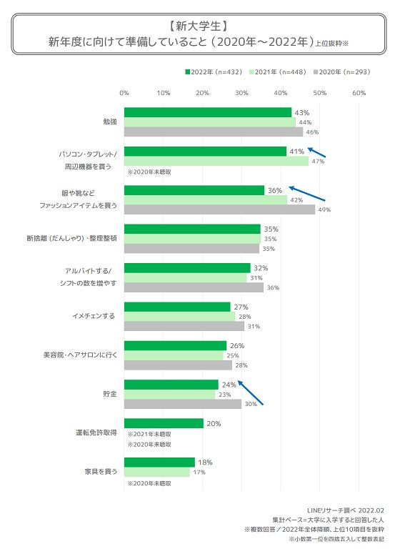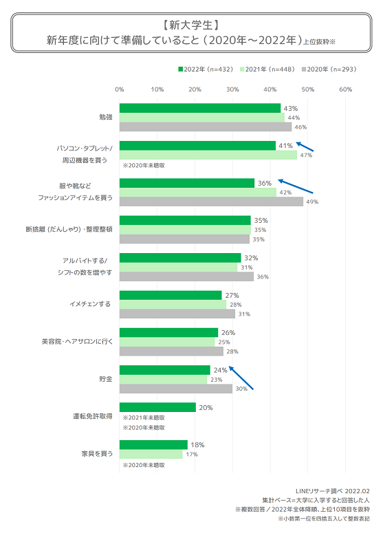 最後に、新大学生が新年度に向けて準備していることをみていきましょう。