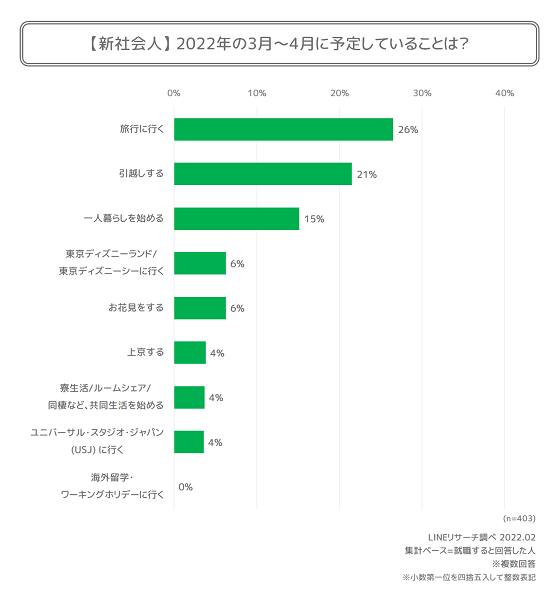 ■3~4月の予定は、「旅行に行く」「引っ越しをする」「一人暮らしを始める」が上位