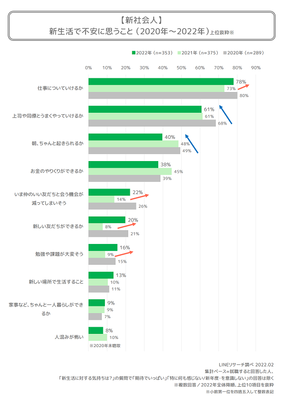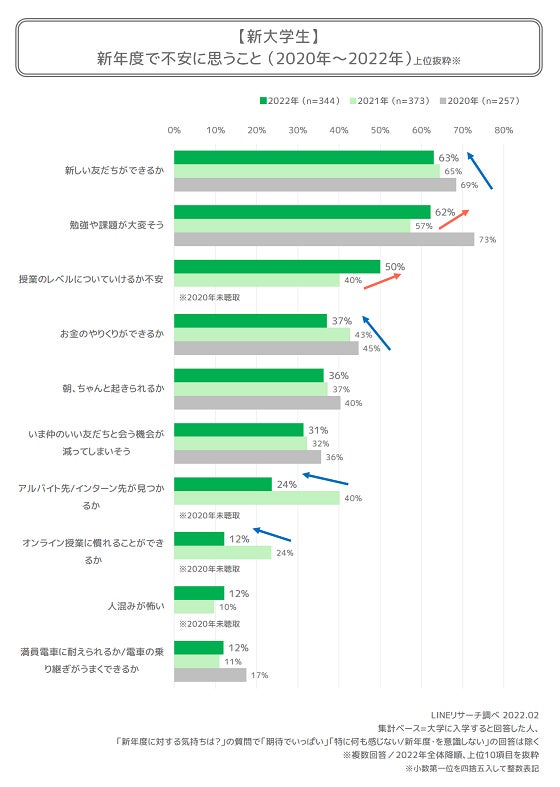 ■新生活の不安に思うこと、友人関係や勉強・仕事関連が上昇傾向に