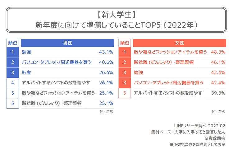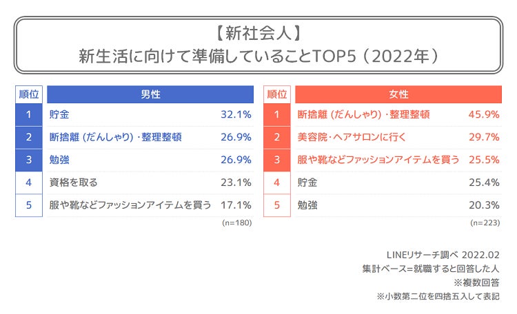 このたびLINEリサーチでは、全国18歳から24歳までの男女を対象に、4月から大学に進学をする新大学生、就職する新社会人を中心に、新生活に向けて頑張りたいことや準備していること、不安に思うことなどについて調査しましたので、その結果をお知らせいたします。