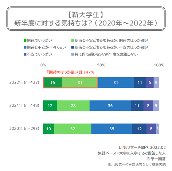 *新年度に対する気持ちとして「期待でいっぱい」「特に何も感じない/新年度を意識しない」と回答した人以外の新大学生
