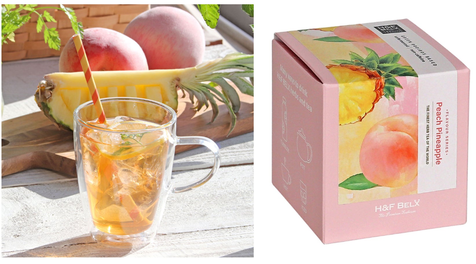 グリーンルイボスティーベースに、フレッシュなパイナップルとピーチの優しい甘さの組み合せ♪