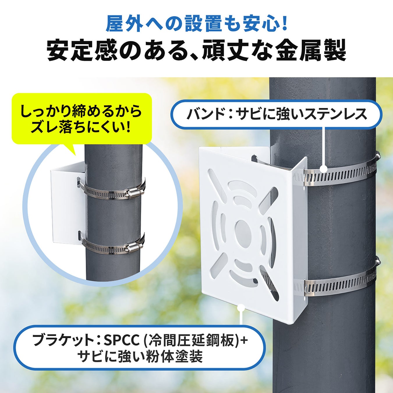 サンワサプライ株式会社(本社:岡山市北区田町1-10-1、 代表取締役社長 山田 和範)が運営している直販サイト『サンワダイレクト』では、防犯カメラやセンサーライトなどを穴を開けずに支柱へ設置するのに最適な頑丈で安心感のある金属製の取り付け金具「200-BKT001」を発売しました。