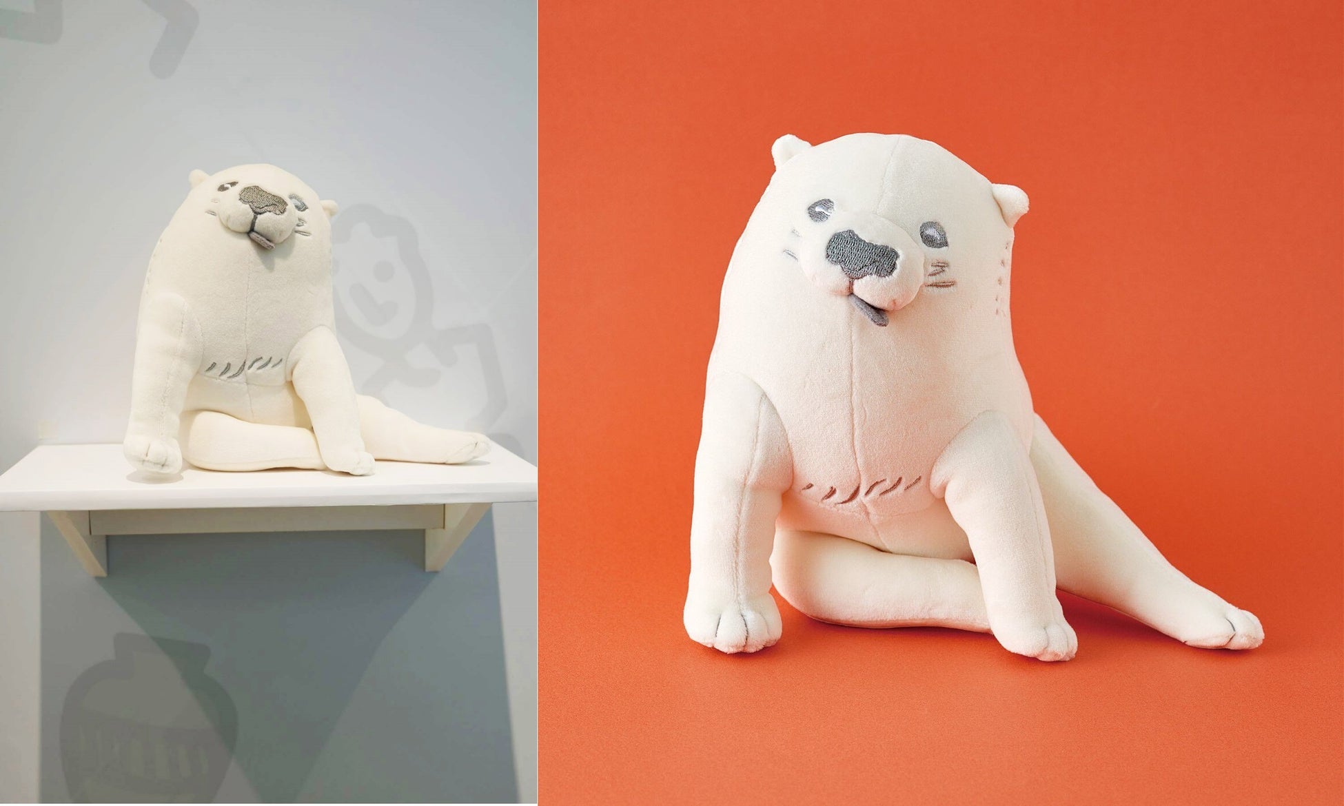 江戸時代の画家・長沢芦雪(ながさわろせつ)による日本美術の名作、《白象黒牛図屏風》に描かれた一匹の白い犬。大きな黒牛のそばにちょこんとお座りするその姿はなんともいえない脱力感のあるポーズです。まるで屏風の中から飛び出してきたかのように、ほぼ原寸大のぬいぐるみペンポーチとして立体表現しました。200年以上前に描かれたとは思えない、江戸時代のゆるキャラのような姿を暮らしの中で楽しむことができます。