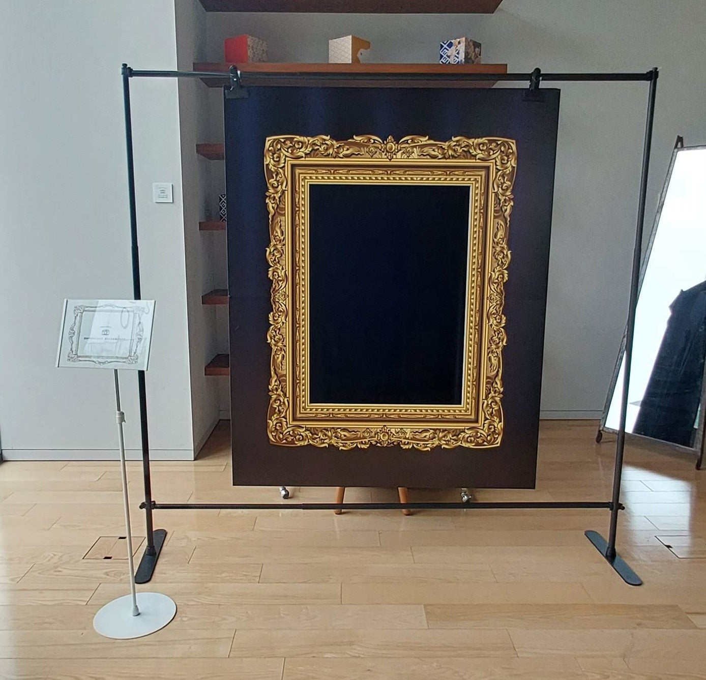 額縁型のパネルによる名画なりきりフォトブースが設置されています。額縁の裏側に人が入ってポーズを作ることで、1枚の名画のようになりきることができます。