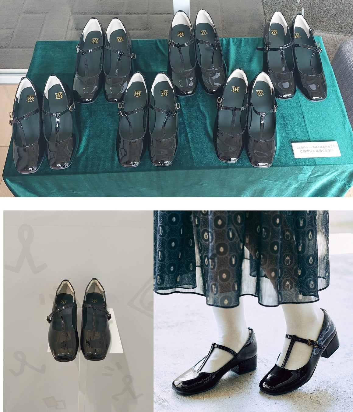 ・試着コーナー「ミュージアム部 美術館に履いていきたい 音が響きにくいエナメルTストラップシューズ」
