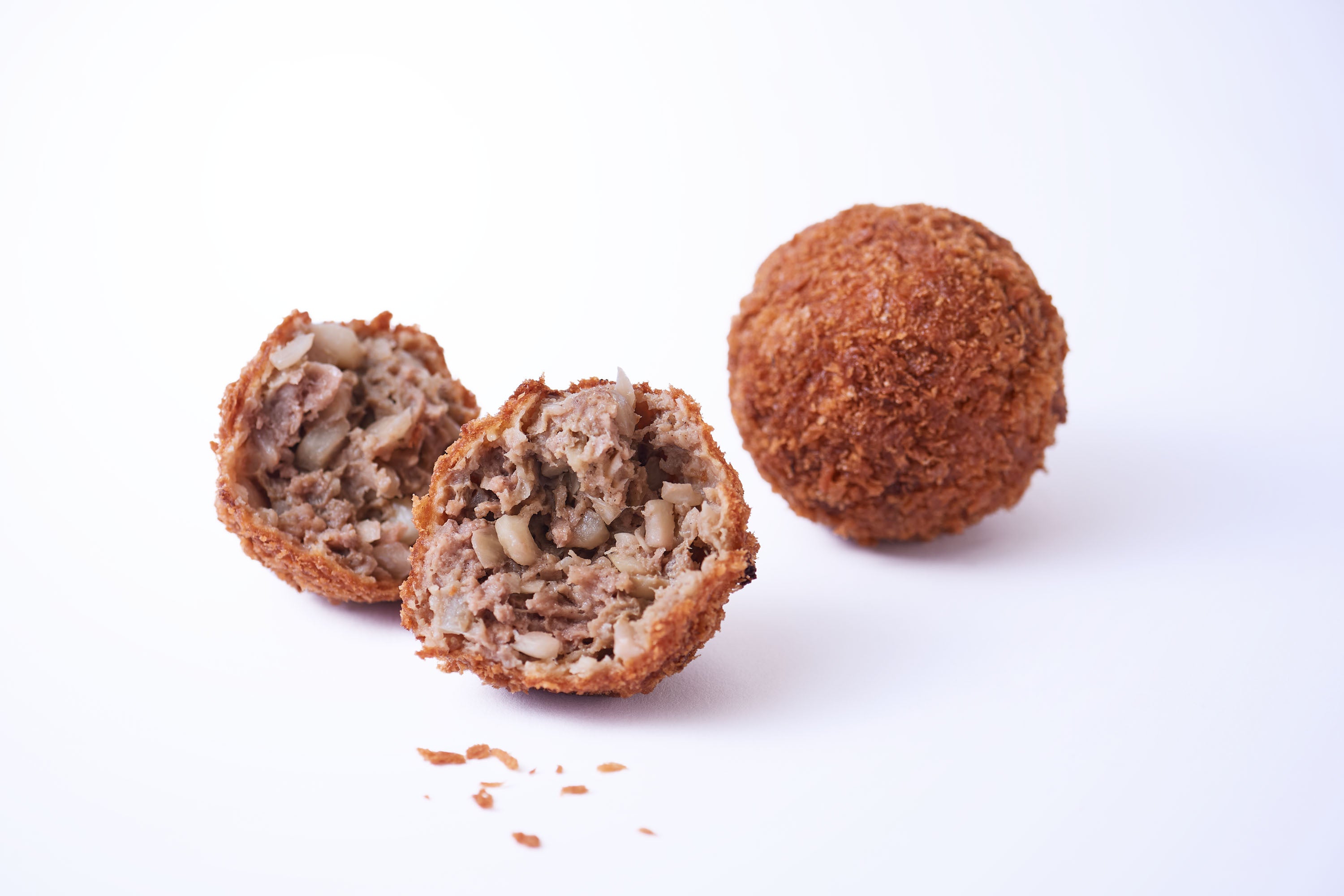 1日約5,000個を販売する、東京・吉祥寺で行列必至の名物「元祖丸メンチカツ」。