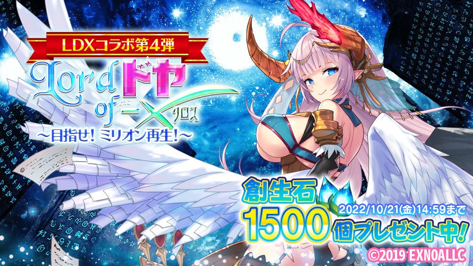 LDXコラボ4の開催を記念して、「創生石×1500個」プレゼント中!是非、この機会に「LDXコラボ4記念 ログインボーナス」をお受け取り下さい♪