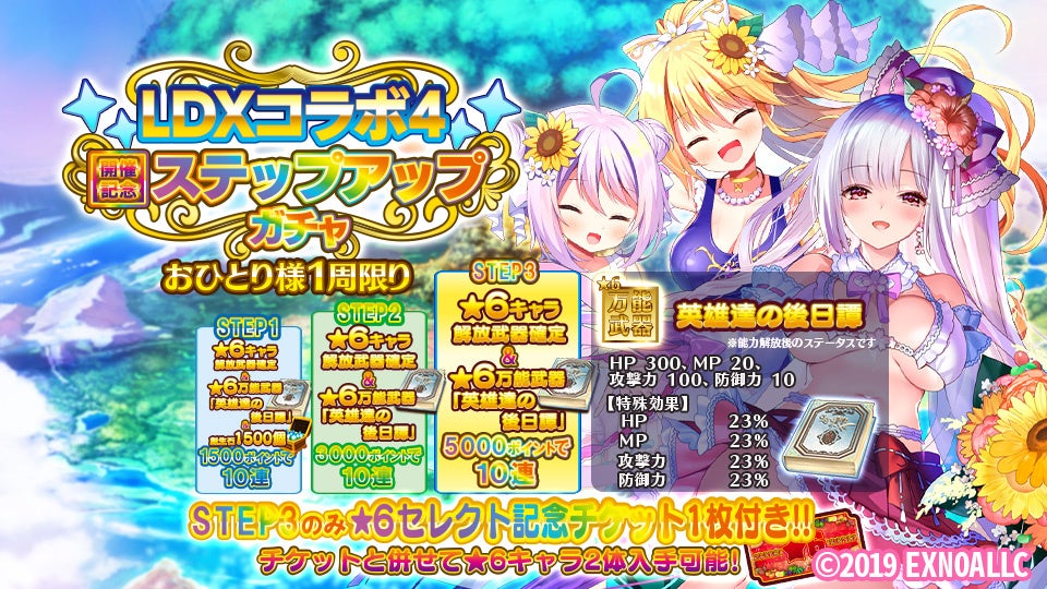 ▼LDXコラボ4特別記念ステップアップガチャ開催!STEP3で★6キャラ2体確定!