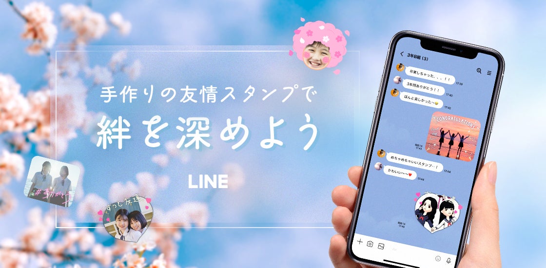 写真やアバターでスタンプが作れる「LINEスタンプメーカー」に春のデコフレームが新登場 手書き風フォントや桜のデコフレームで卒業シーズンに絆を深める友情スタンプを作ろう!