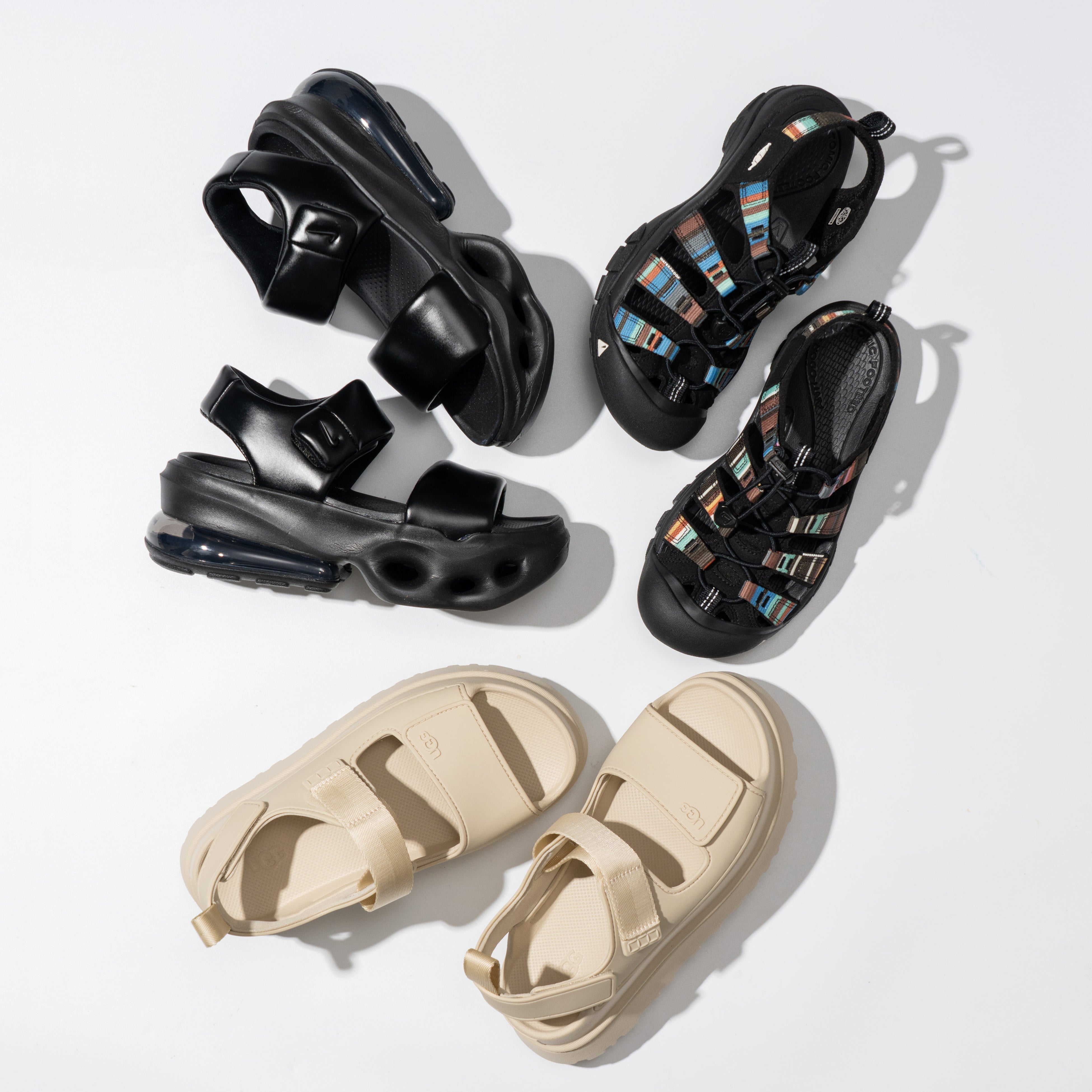 カンペールのフラワーサンダルをはじめ、NIKE AirMaxHalo、KEEN ニューポート、UGG ゴールデングロウなど、トレンドのカジュアルサンダルを豊富にラインアップしました。
