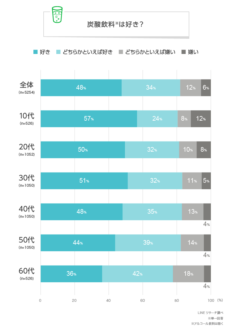 LINEリサーチ、全国の男女を対象に炭酸飲料に関する調査を実施