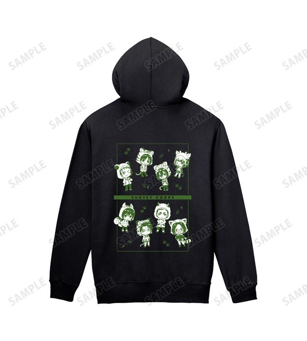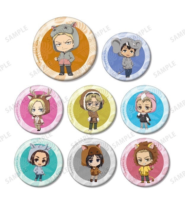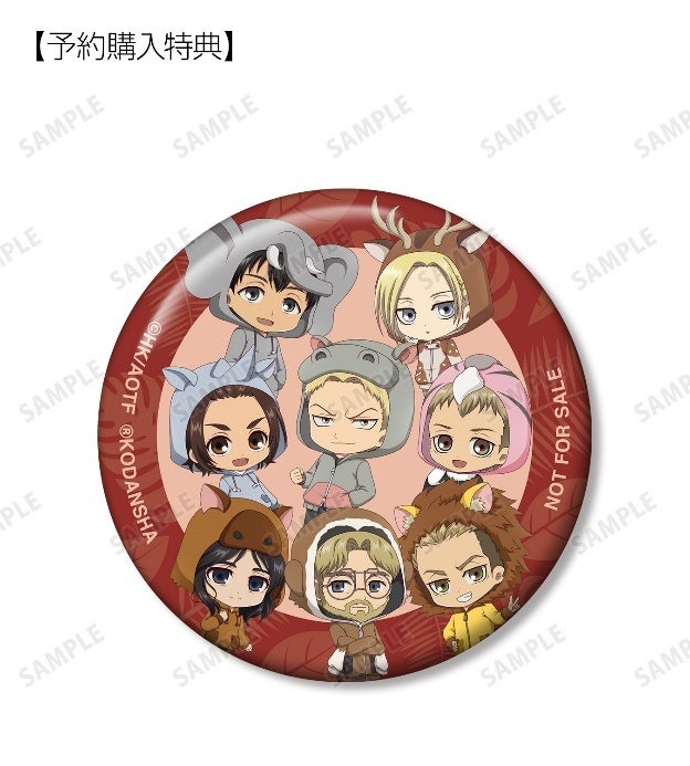 エレン、ミカサ、アルミン、ジャン、サシャ、エルヴィン、ハンジ、リヴァイ、ライナー、ベルトルト、アニ、ジーク、ファルコ、ガビ、ピーク、ポルコの描き起こしちびキャライラストをメインにデザインしました。