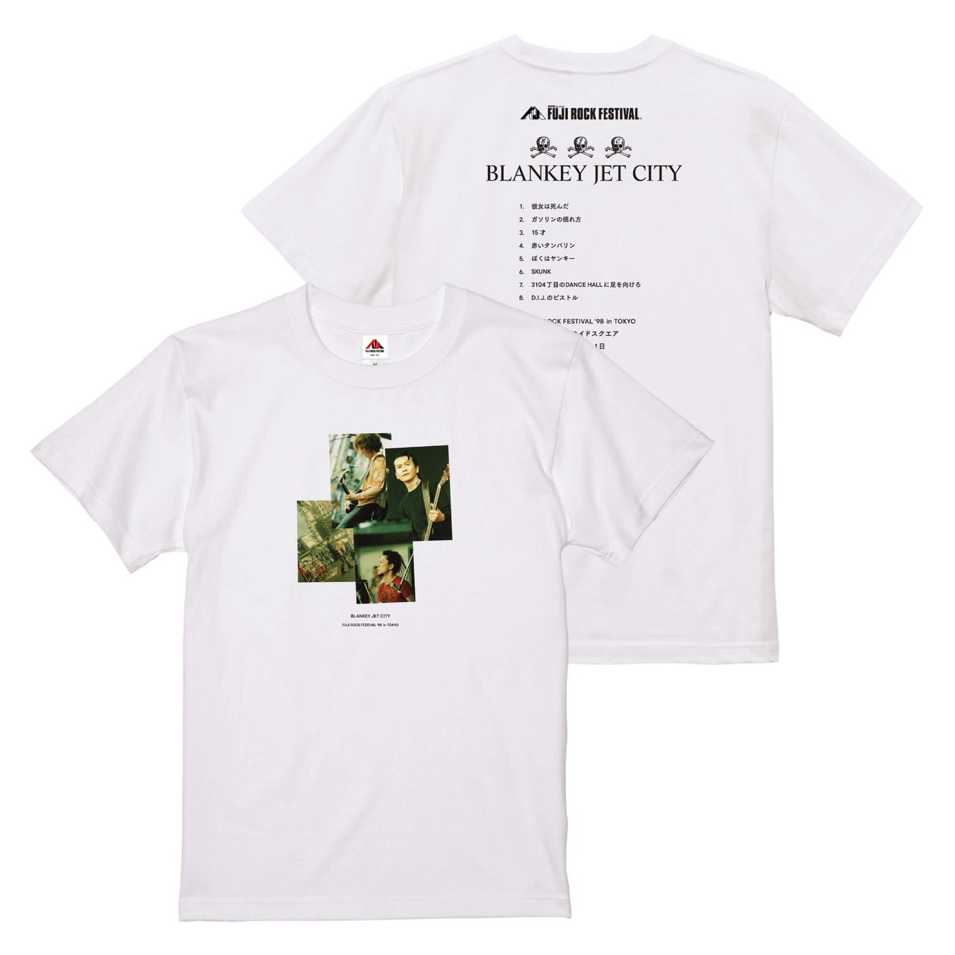 後の伝説としてそのステージを目撃した人たちの語りぐさとなったフジロック’98のステージがプリントされたブランキー・ジェット・シティ、ミッシェル・ガン・エレファントとのスペシャルコラボTシャツが発売されます。