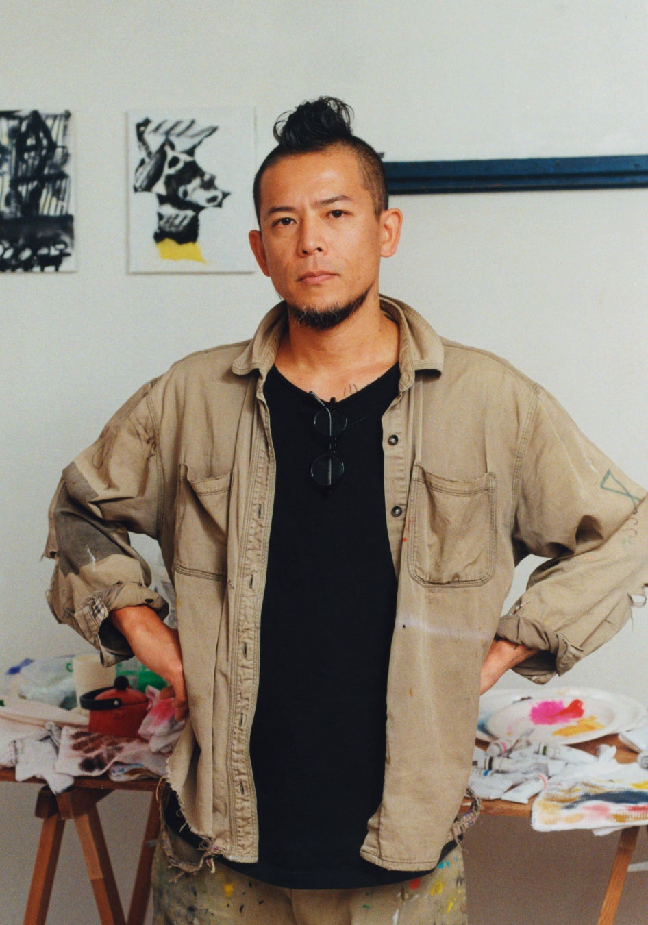 1979年、埼玉県生まれ。アメリカ・ポートランドでの8年間の活動後、 2021年にオーストラリア・シドニーに拠点を移し現在に至る。オイルパステル、木炭、絵の具からファウンドオブジェクトや布地まで、さまざまな画材を用いて大胆な色、線、形でときに認識可能な、ときに抽象化されたモチーフを描く。近年の作品にはジェンダー、暴力、家庭生活、生と死を連想するイメージが繰り返し登場。こうしたイメージやスタイルは、 自身を取り巻くこの現実の世界への愛と拒絶から生まれている。例えば、オートマティスムからパンクロックまで、 Takasakiが過去の芸術運動や現代文化へ向ける深い関心は、すでに元々意味の定められている物事に対する強い懐疑心の裏返しとして捉えることができる。この既存の世界への好奇心と完全な自由への欲求との間の綱引きが、自身の制作活動を推進している。イメージを歴史や論理の象徴として使用することを敢えて拒否し、自身の実際の生活の中で発生する様々な考察や経験を絵画やドローイング、彫刻に注ぎ込んでいる。このようにして、歴史的なものや社会的な構築物に対する反逆行為として機能し、視覚的イメージをこれまで疑われることの無かった既存の定義の檻の外側に置くことで、直接的かつ自律的に世界を体験するための入り口へとイメージを転換させている。作品は、ロサンゼルス、ニューヨーク、ポートランド、クウェート、シドニー、メルボルン、香港、台北、北京、東京など世界各地で展示されており、シアトルのスターバックス本社、ポートランドのThe Hoxton Hotel、大阪のサクラクレパス株式会社のパブリックコレクションとしても収蔵。2000年12月に渋谷パルコ・クアトロ館にオープンした岩盤ショップでは初代店長を務め、コアスタッフとして初期岩盤を支えた。