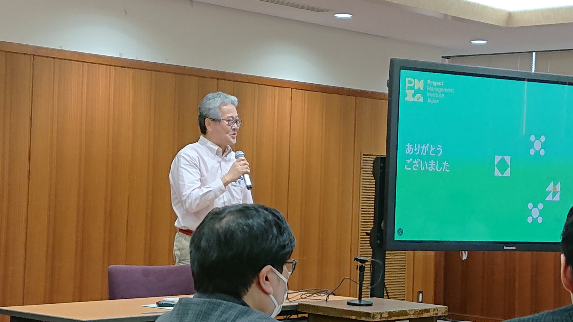 第3回である今回は、PMI日本支部からPM基礎研修プログラムを担当する石塚幸夫リーダーと鳥本明男サブリーダー、田中啓介氏や大森純子氏らが来学し、講師を担当しました。