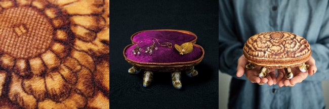 「刻彫梧桐金銀絵花形合子ポーチ」をミュージアム部noteでチェック