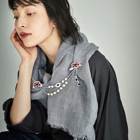 やわらかな虹色の輝きが魅力的な「螺旋(らでん)細工」に彩られた宝物から着想を得た、シェル風素材のクリップアクセサリーです。螺旋や玳瑁(たいまい)を思わせるパーツで、宝物の繊細な意匠が表現されています。羽織りやストールなどにさっと留めるだけで、いつものコーデが上品に仕上がります。