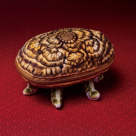 正倉院に多数収蔵されている、神仏にお供えする物を収めたふたつきの箱「合子(ごうす)」。その中から、とりわけ個性的な宝相華(ほうそうげ)を立体的に表現した花形合子(はながたごうす)がモチーフのポーチです。脚付きのきらびやかな姿はまるで不思議な生きもののようにも見えて、使ううちにより愛着がわいてきそうです。