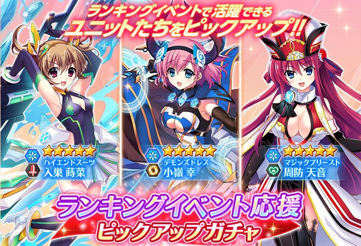 今回は2つに分かれたガチャでそれぞれ3人ずつをピックアップ!ランキングイベントで活躍できるユニットたちを編成してパーティを強化しましょう!