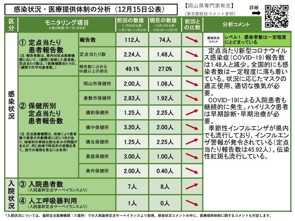 【岡山大学】岡山県内の感染状況・医療提供体制の分析について(2025年12月15日現在)