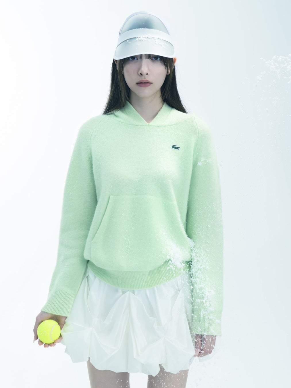 胸元には「LACOSTE」を象徴するワニロゴをあしらい、フロントのカンガルーポケットでカジュアルなムードを演出。