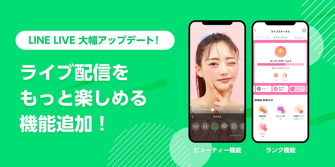 LINE LIVE、配信時に顔が盛れる「ビューティ機能」の追加や「ランク機能」の大幅リニューアルなど、大型アップデートを実施!