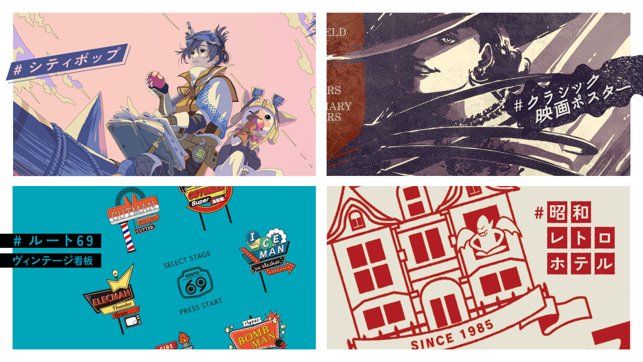 記念すべき第1弾では「#レトロ」をテーマに、カプコンを代表する4作品をそれぞれの異なるタイプのレトロに仕上げました。「もしも、ドミトレスク夫人の映画があったら…」「もしも、モンスターたちが宿泊できるホテルが魔界村にあったなら…」などの”if世界”の発想で制作された作品は、CAPCOM CREATORS LABELならではの魅力が詰まった世界観となっています。