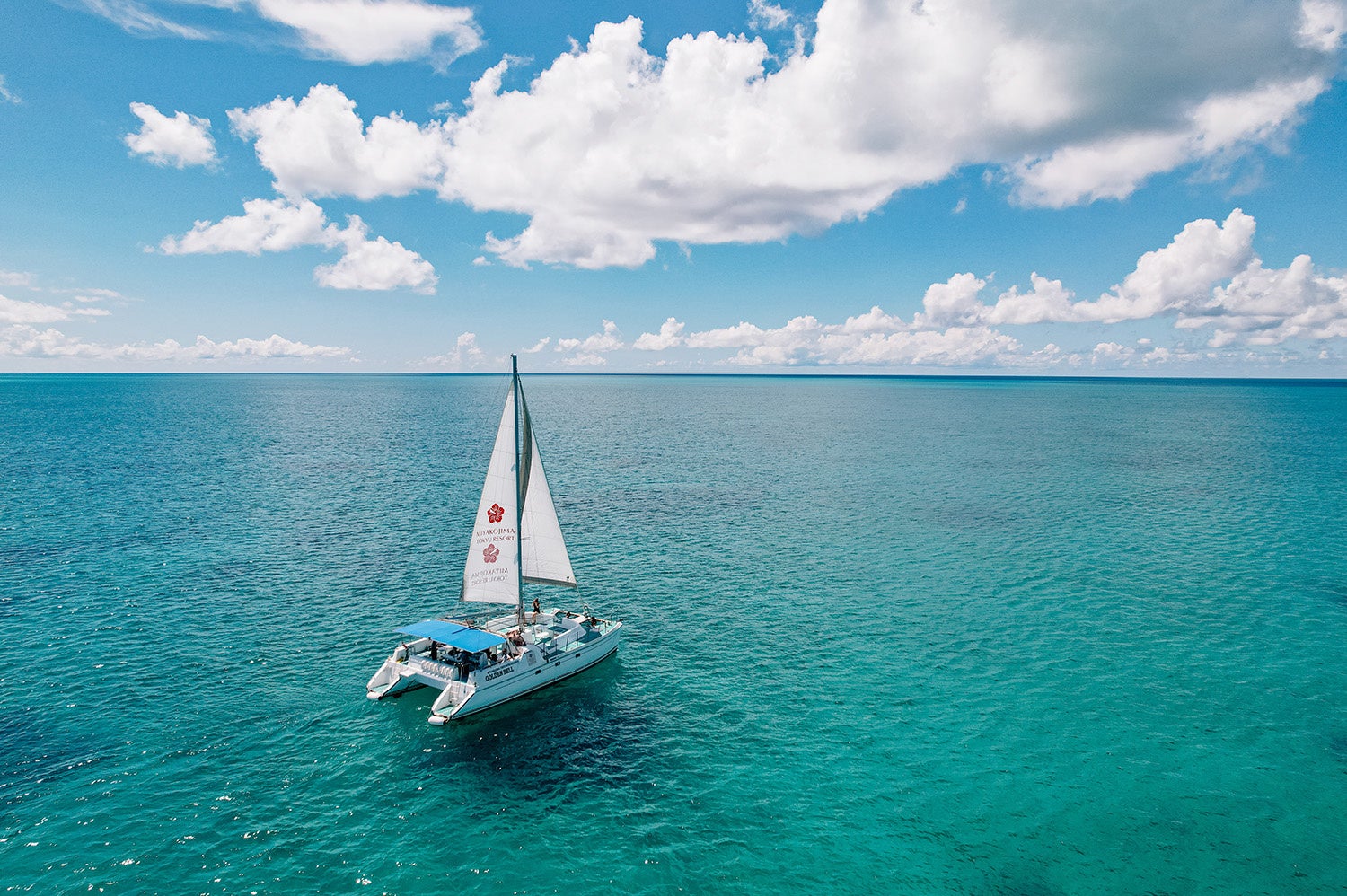 宮古島東急ホテル&リゾーツでは、ご宿泊のお客さま限定でホテル目の前に広がる宮古ブルーの美しい海を舞台に、ホテル所有の大型カタマランヨット「ゴールデンベル号」への乗船体験と、小学生のお子さまから大人まで楽しめる内容の「航空教室」を同時に体験できる特別なイベントを開催いたします。