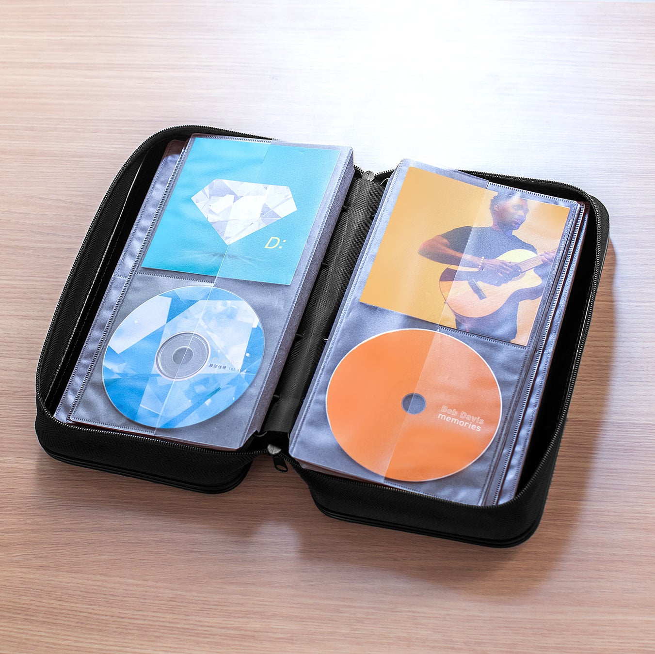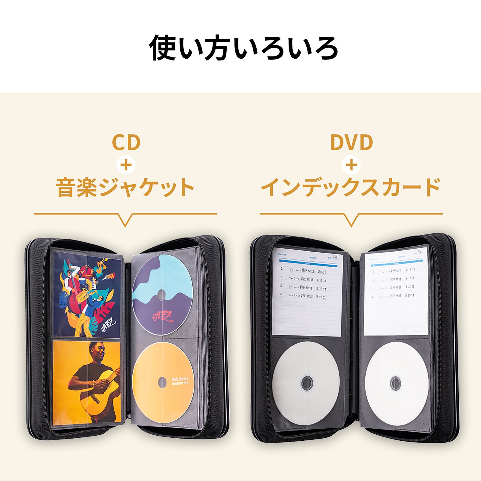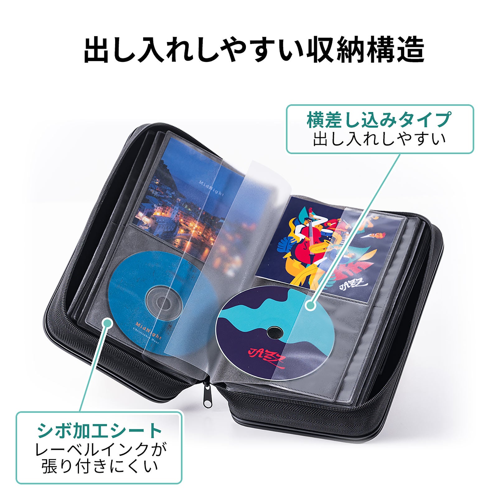 本製品は、ディスクと一緒にジャケットやインデックスカードも収納、管理できるファスナー付きセミハードケースです。