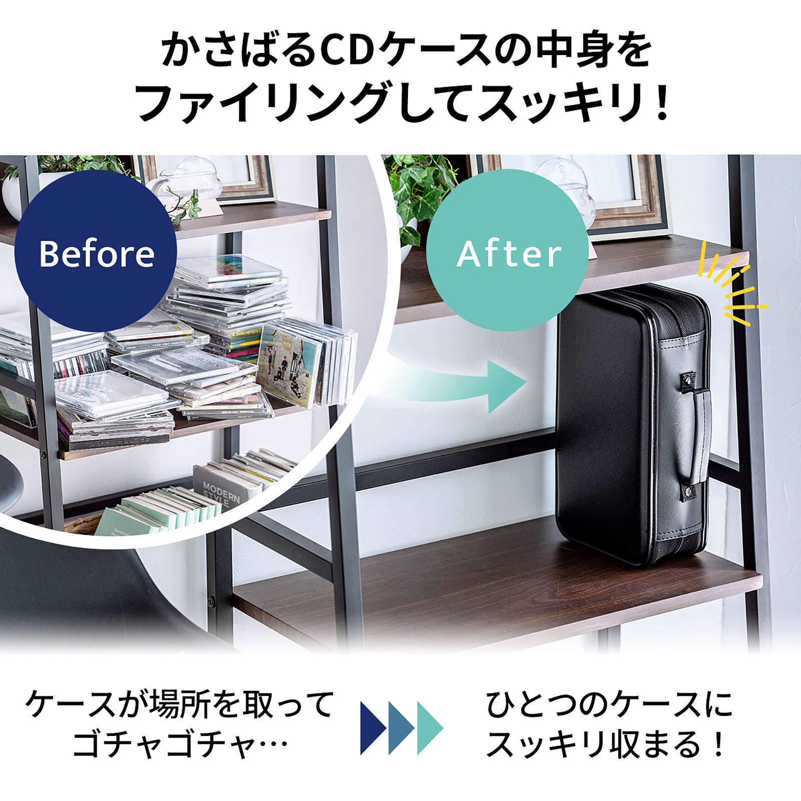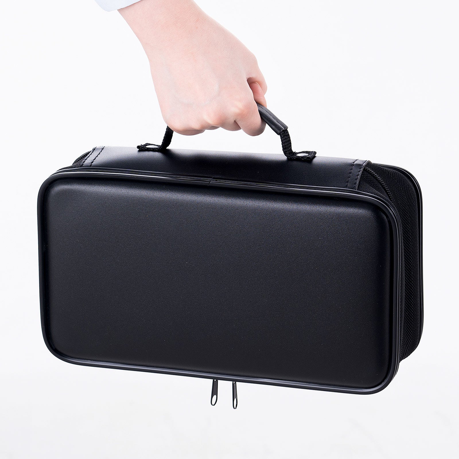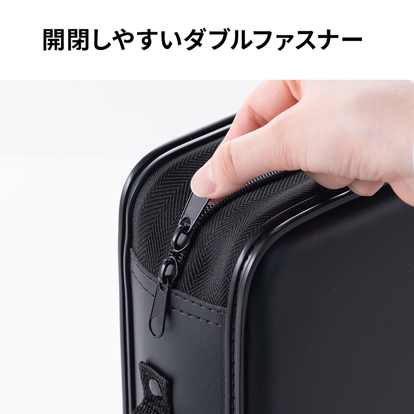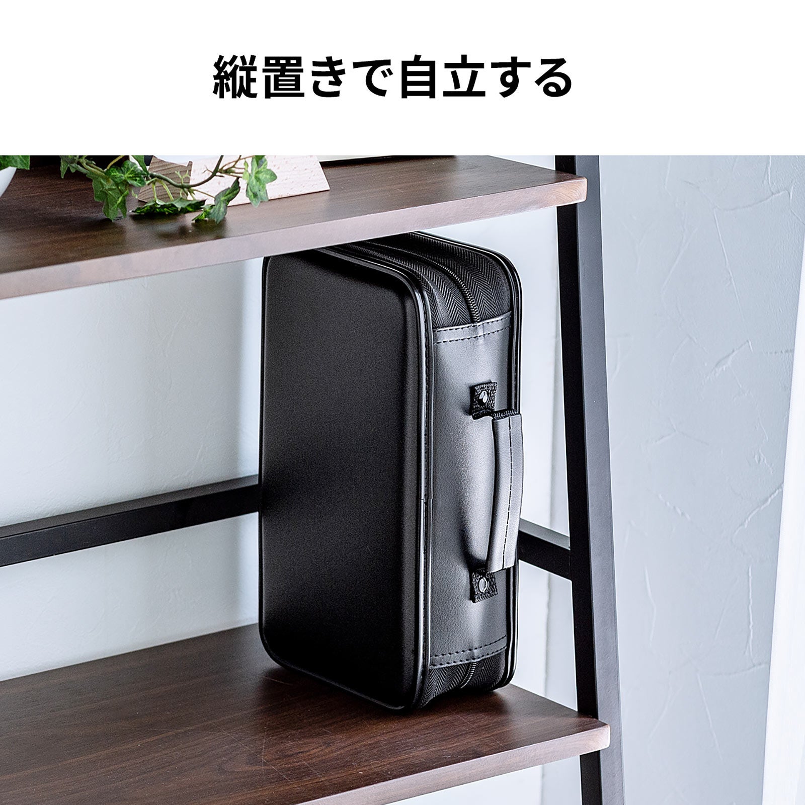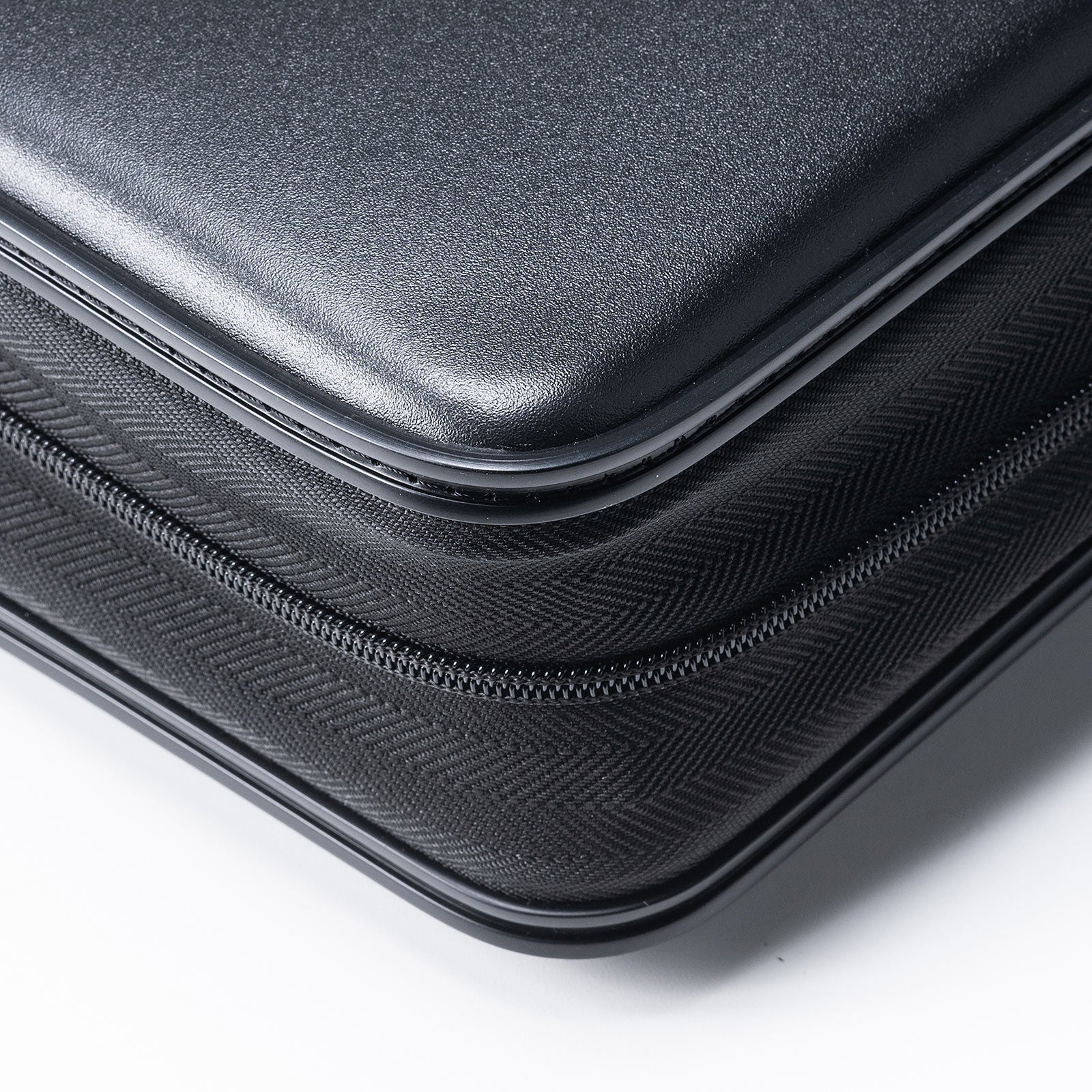 ブルーレイ/CD/DVDケース 大容量 120枚収納 CDジャケット収納対応 セミハード 取っ手付き ファスナータイプ ブラック