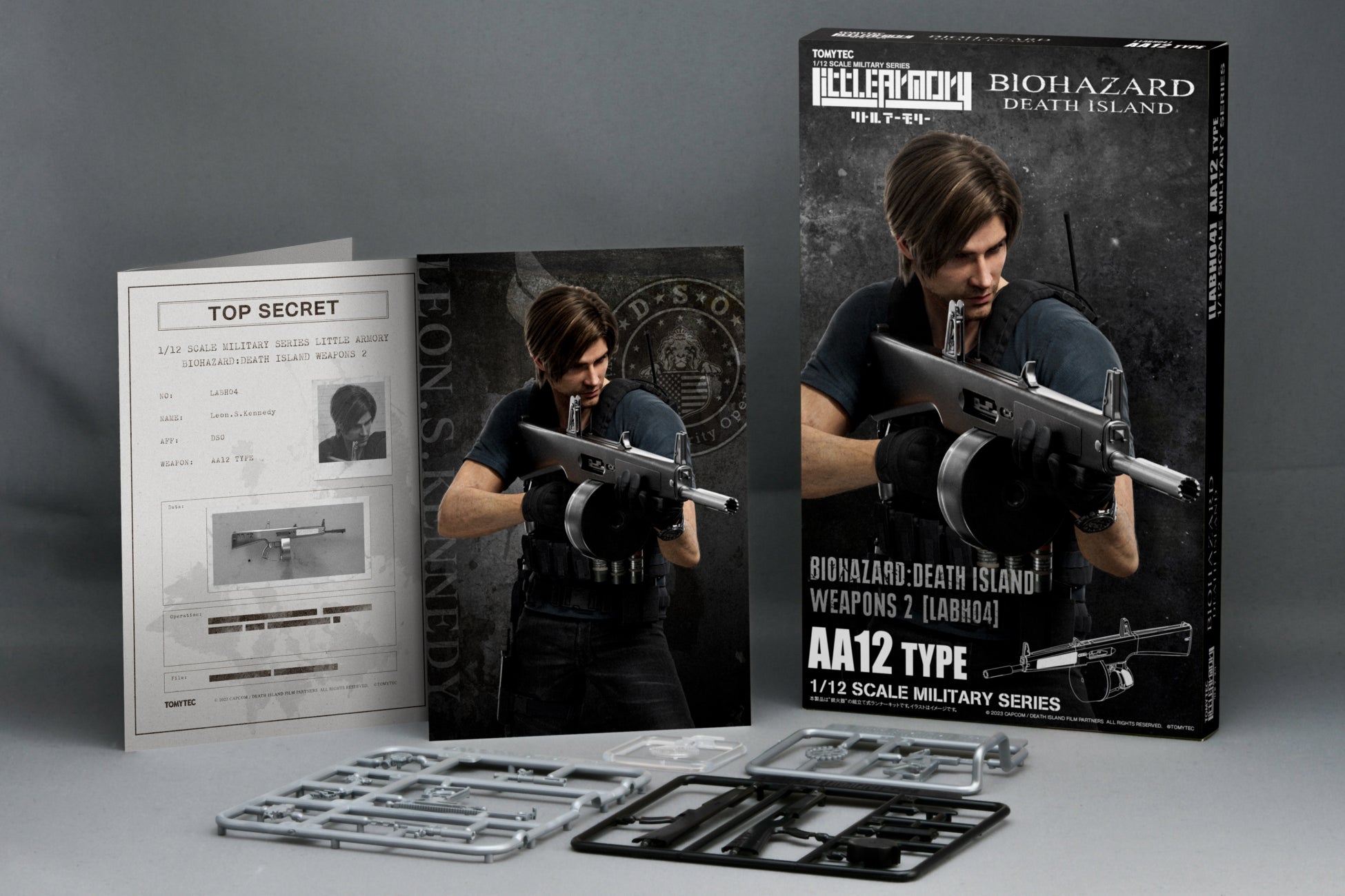 劇中でレオン・S・ケネディが手にするフルオート式ショットガンAA-12を1/12スケールモデルとして再現。3つ成型 色でドラムマガジン内部まで作り込めるリアル仕上げが可能で、ストライクヘッドのマズルデバイスは新規金型パーツを使用しました。さらに、パッケージ及び同梱ディスプレイカードには、本製品用に新規で起こしたキャラクター CGアートを使用。組立説明書もバイオハザードワールドをイメージした、こだわりのデザインです。