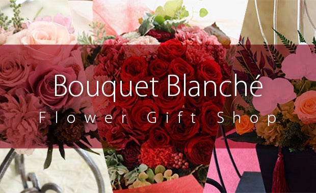 フラワーギフト ブーケブランシェです。お誕生日やさまざまな記念日、母の日、敬老の日などの各種イベント、卒業・転勤・入学などのお祝いにお使いいただけるプリザーブドフラワー※の花束、フラワーアレンジメントをご用意しております。