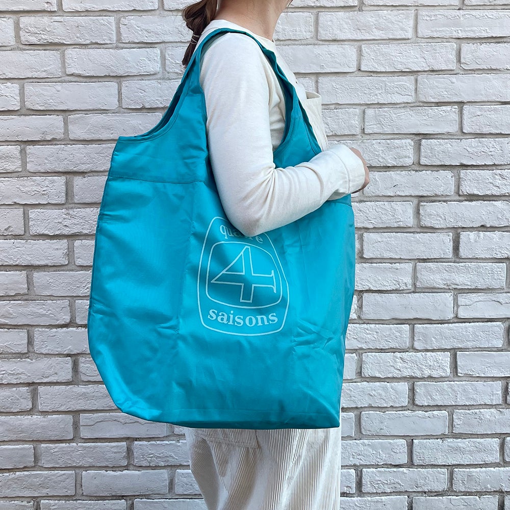 アルミニウムの保冷シートと、ファスナー付きのキャトル・セゾンオリジナルのエコバッグ。使い終わった後はくるくる巻いてコンパクトに折りたたむことができます。夏らしい元気なグリーンカラーは男女問わずお使いいただけます。