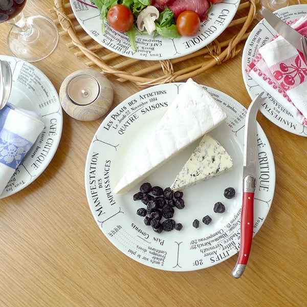 約200年前にパリのビストロでメニューを店内に配るかわりに食器にプリントして使用していたというアイデアをもとに復刻したテーブルウエア。オーソドックスな形は、朝食やティータイムなど毎日の食卓で活躍します。