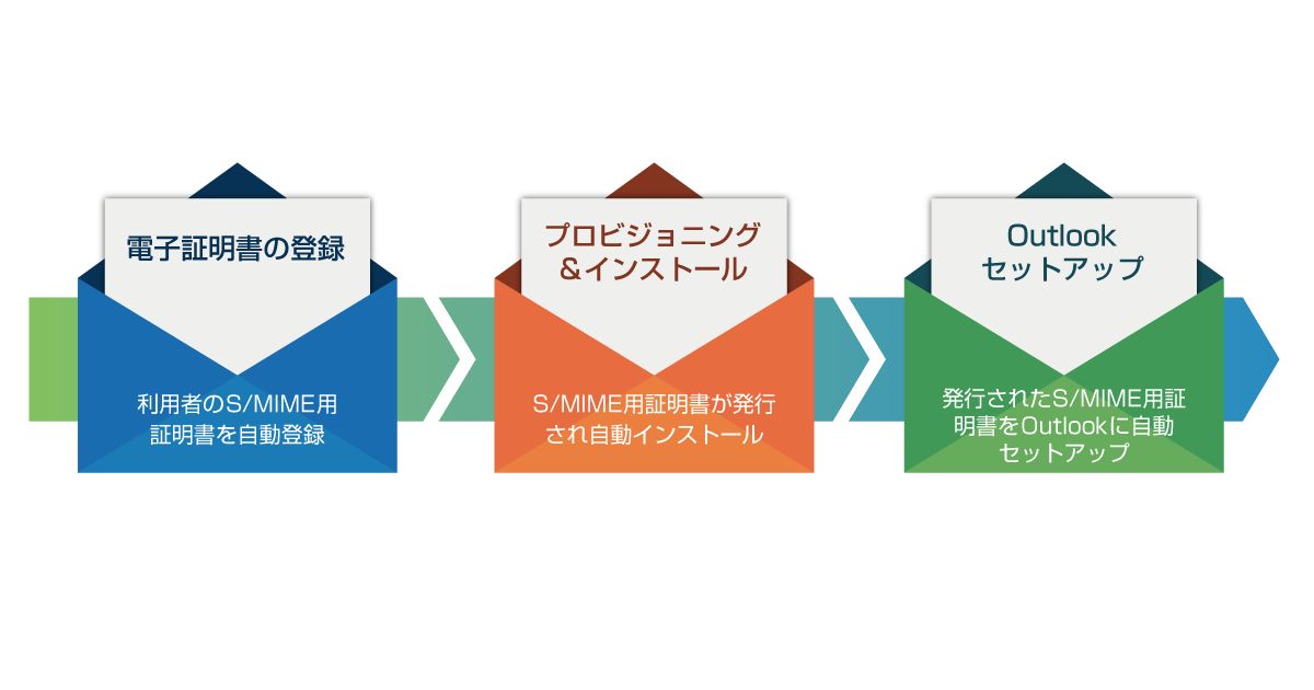 これにより、Windows用OutlookへのS/MIME用証明書の自動設定や複数デバイスへの証明書ローミング等が可能となり、企業等におけるデバイスやメールのセキュリティ強化とシステム管理業務の大幅な効率化に貢献します。