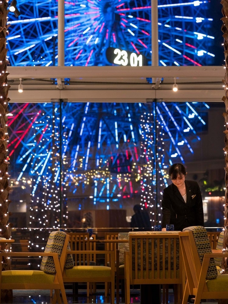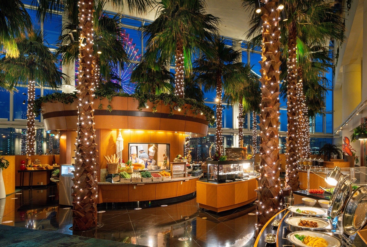 さらにお盆期間には、生演奏によるライブ演出も予定しており、お食事だけでなく、特別な夏の夜の体験をご提供いたします。夏らしく華やかなお料理とデザートが並ぶブッフェボードは、まさに目でも楽しむブッフェ。大人も子供も大満足のラインナップです。リゾートを訪れたような「カフェトスカ」で、大観覧車を間近に、煌くパームツリーに囲まれた贅沢なディナータイムをどうぞ。