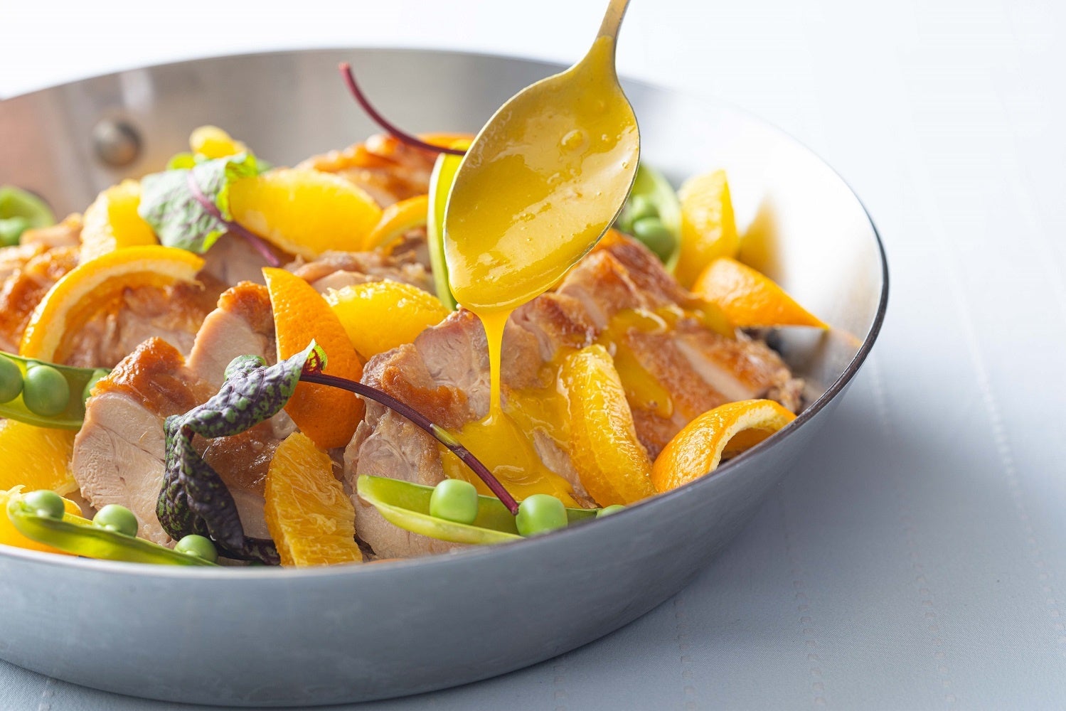 ピーチショート、ヨーグルトムース、オレンジケーキ、クリスピーピスタチオ、レモングラスゼリー ほか