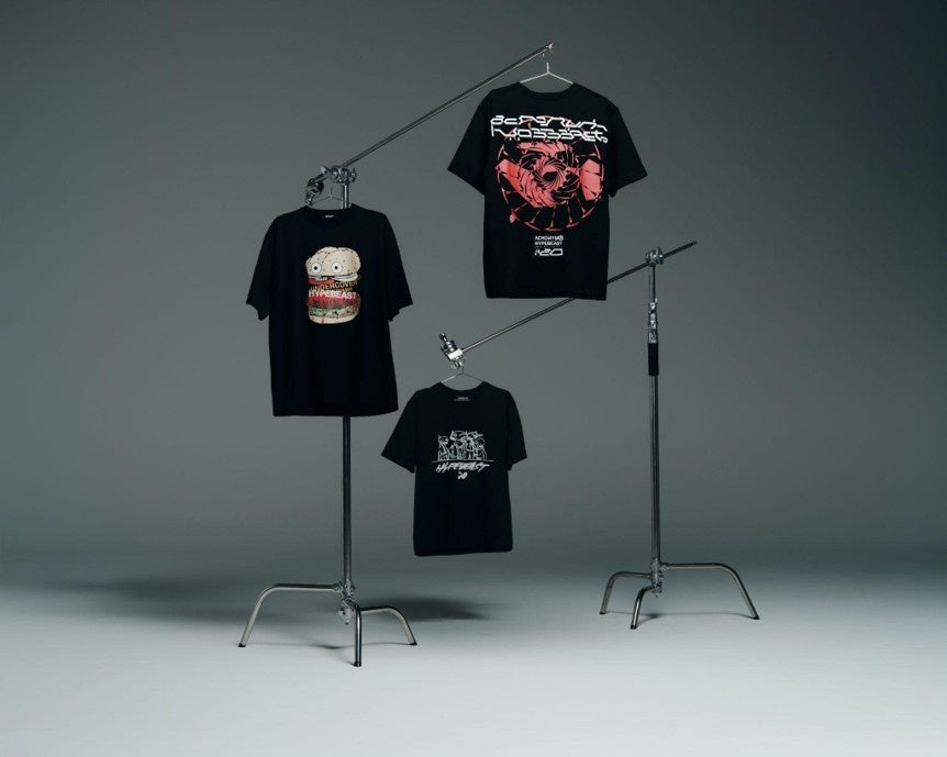 会場では、A BATHING APE®(ア・ベイシング・エイプ)、Anti Social Social Club(アンチ・ソーシャル・ソーシャル・クラブ)、Brain Dead(ブレイン デッド)、NEIGHBORHOOD(ネイバーフッド)、UNDERCOVER(アンダーカバー) など、Hypebeastの世界観を象徴するブランドとの20周年記念Tシャツも展示、一部数量限定で販売予定。