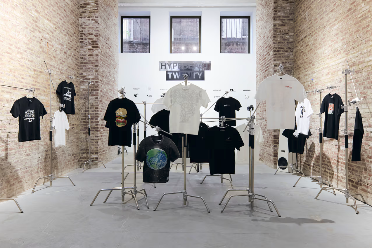会場では、デザイン事務所TRIPSTERが手掛ける没入感のある展示空間とストーリーテリングを通して、Hypebeastの成長の軌跡と現在地を体感的に辿ることができます。また、20周年を記念した限定ポップアップも併設し、ブランド/デザイナー/アーティストとのコラボレーションによるアニバーサリーTシャツコレクションを数量限定で販売いたします。